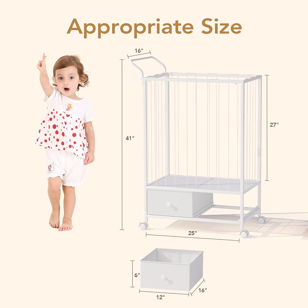 [No Messy Toy Piles]Reinforced iron mesh bottom prevents toys from falling out, while 2 removable fabric baskets organize small toys, books, or blankets