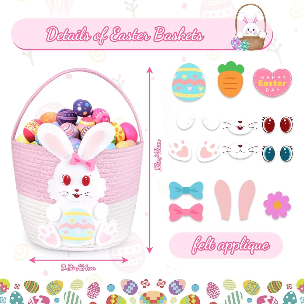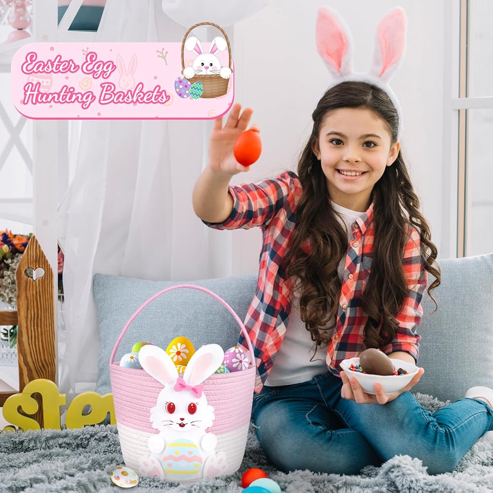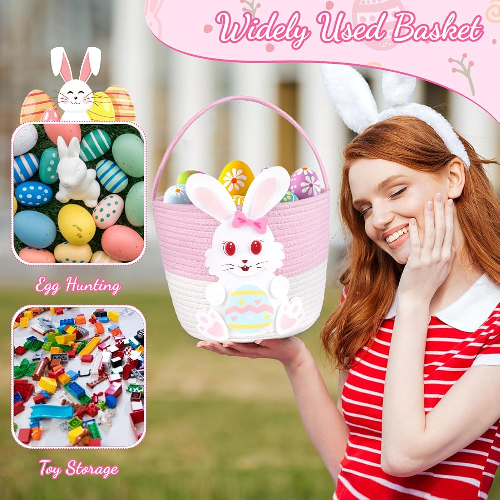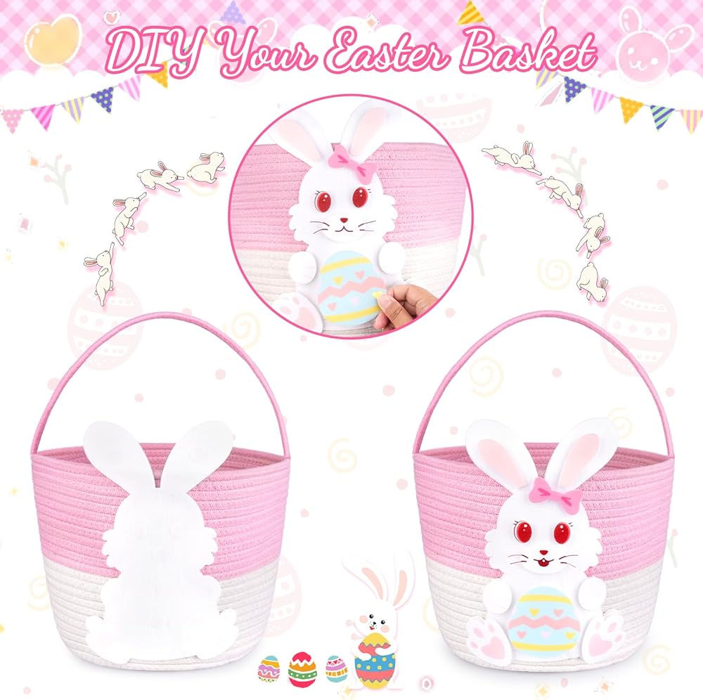 Easter Baskets:Get ready for Easter egg huntting with the pink and white bunny woven basket featuring a festive Easter.Adorable DIY rabbit designs to drighten up your Easter basket,everyone will love the creative design