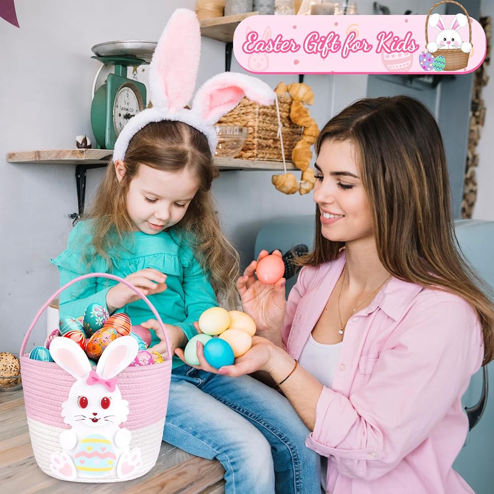 High Quality:The easter bunny easter baskets are made from high-quality natural cotton,this basket ensures safety for kids and babies as they gather Easter eggs and toys during the Easter
