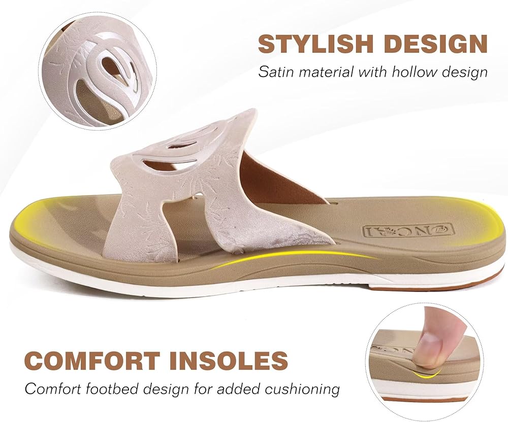 【Non-slip】: The rubber outsole of these slides provides superior grip and slip resistance, ensuring you stay safe and stable on any surface, whether it's wet sand or slick pavement. Enjoy every step with confidence.