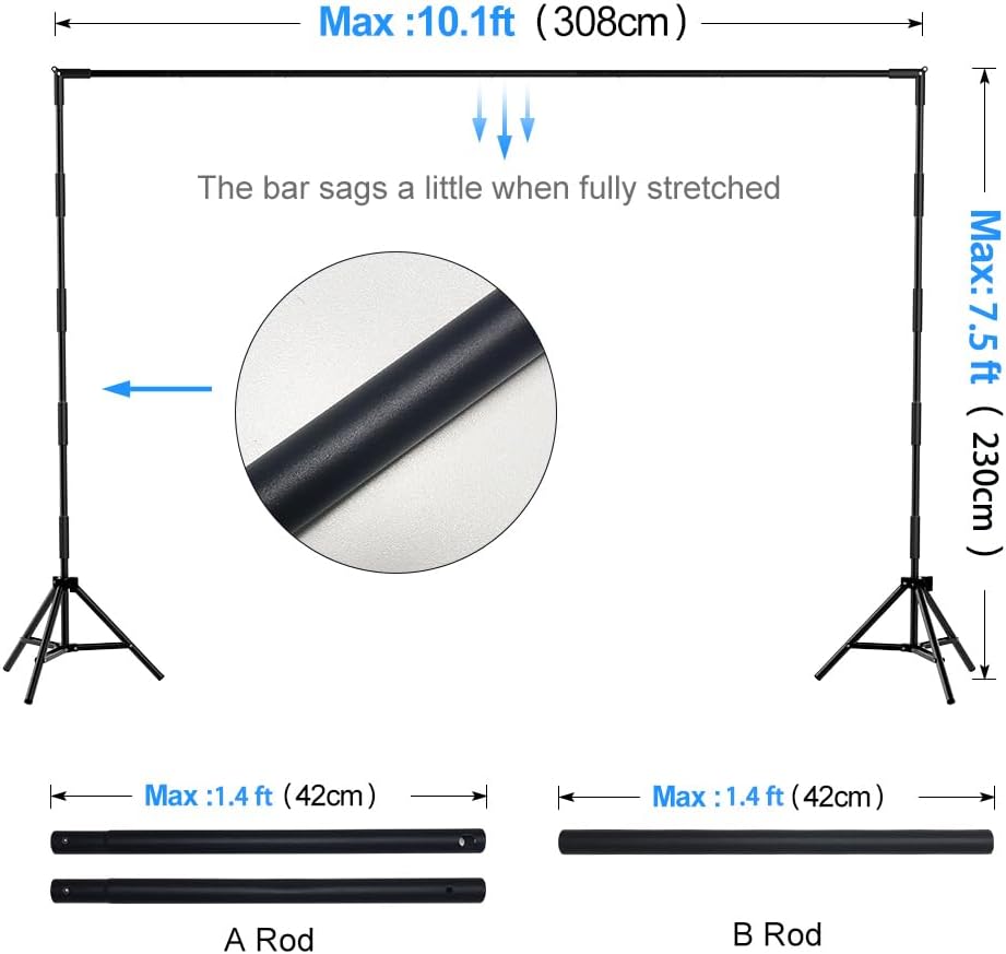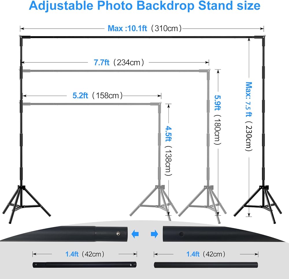 【2025 Unique Lightweight Design】The new lightweight design makes the background more stable, durable, and visually appealing. Horizontal bar segmented design, vertical bar segmented design, size can be DIY, maximum height 230CM, maximum width 310CM, segmented design makes it more compact and easy to carry. The carefully designed short tube horizontal and vertical bars make the operation smoother
