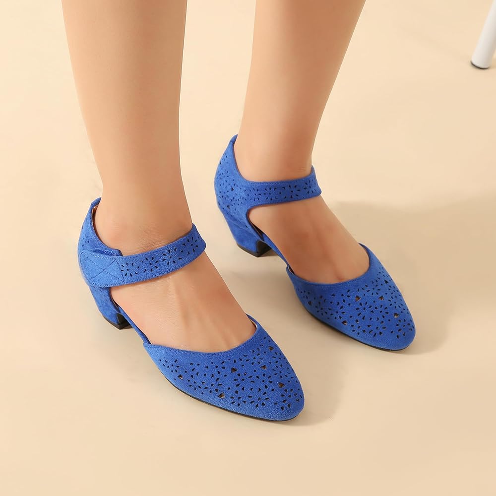 WOMEN DRESS SHOES HEELS:These classic heels feature a closed toe design look that is full of retro. Unique cutout details and low heels perfectly accentuate the vintage feel of all your outfits. Womens dress shoes wide width features a customized fit with an adjustable hook and loop ankle strap to keep your foot in place.