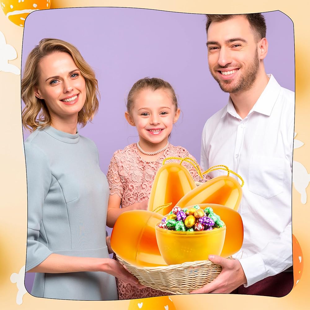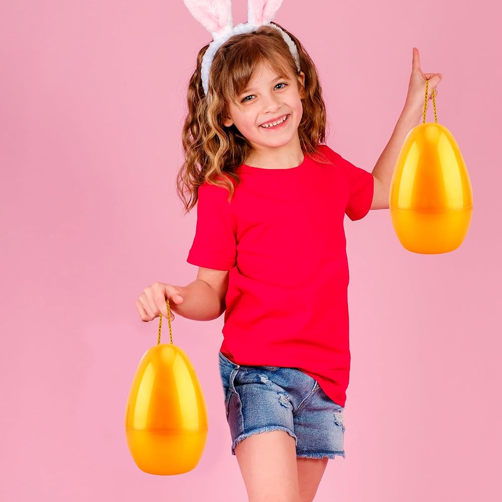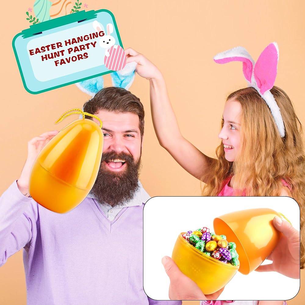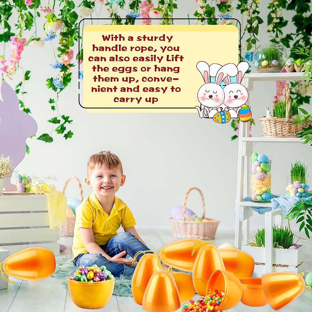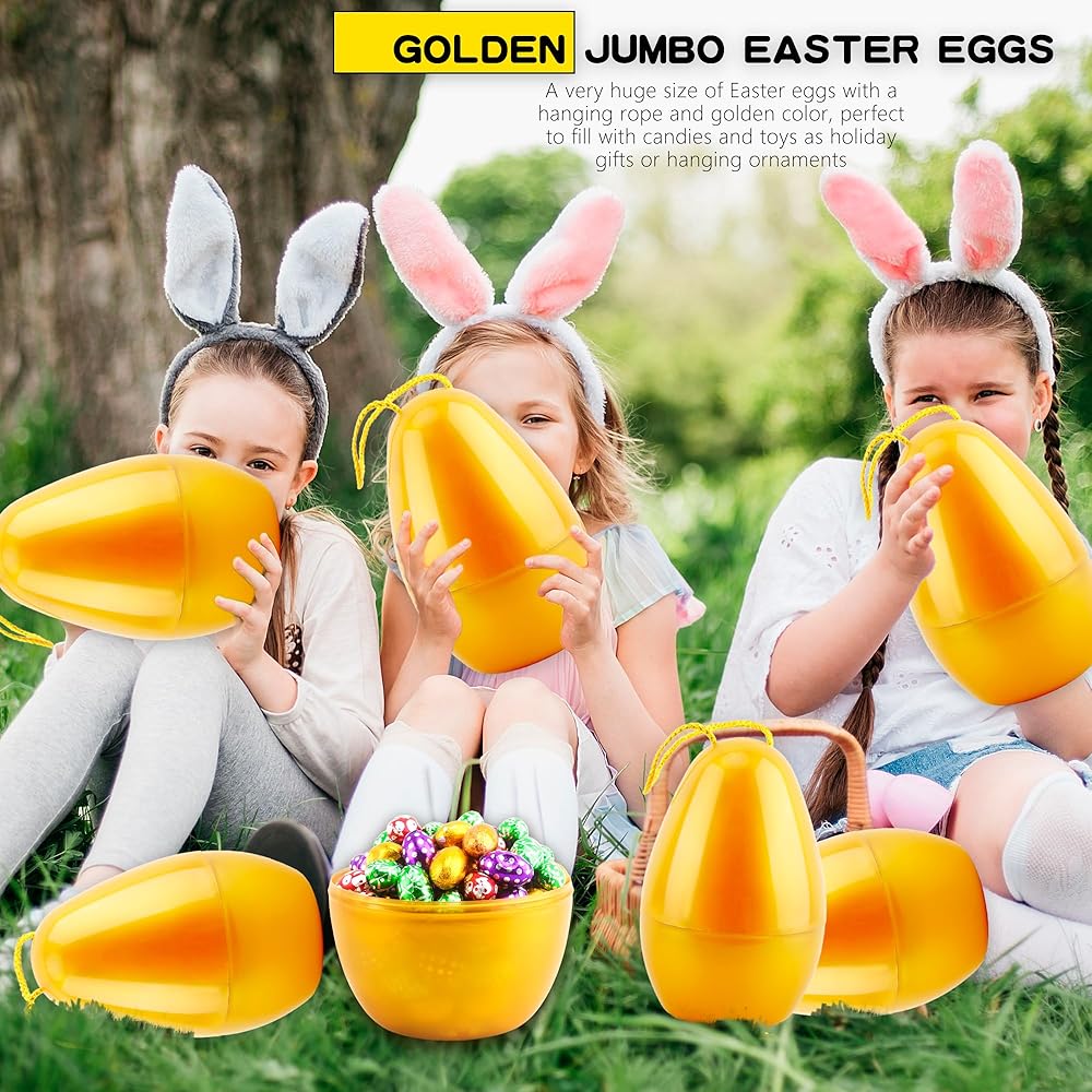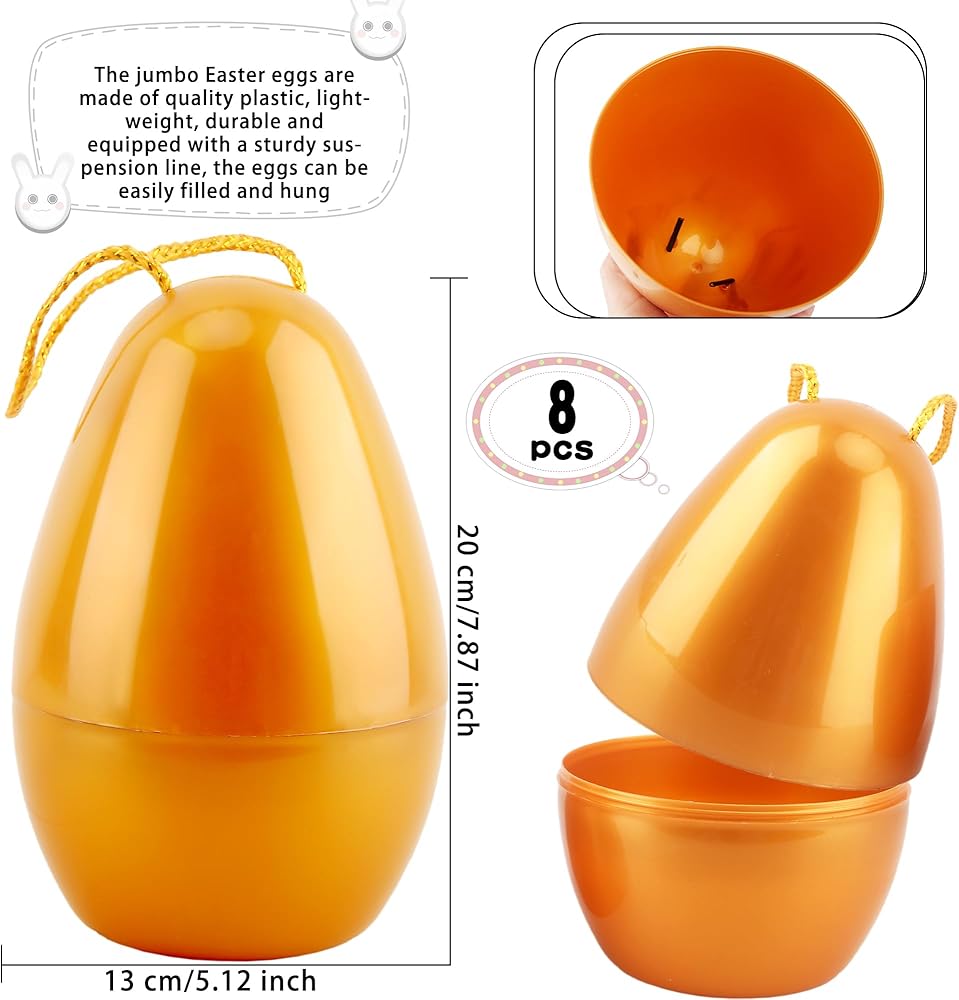 Swakuta 8 Pack Golden Jumbo Easter Eggs with Rope 8 Inch Large Fillable Easter Egg Giant Plastic Empty Easter Eggs for Easter Hanging Hunt Party Favors