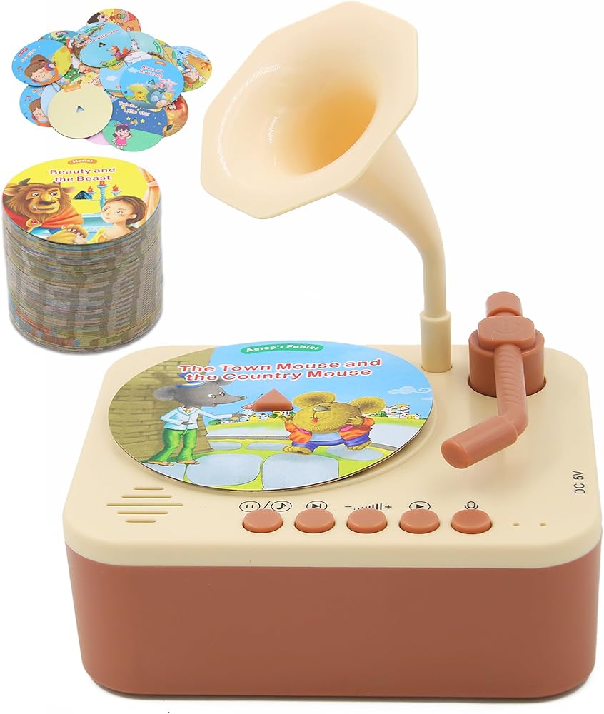 🎵 Interactive Kids Phonograph for Learning and Fun: The Ghousetec Kids Phonograph features 96 interactive cards, including bedtime stories, Aesop's fables, children's songs, and classical music. This versatile toddler record player helps boost imagination, cognitive skills, and language development, making it the perfect storytelling toy for kids aged 3 and up. Ideal for educational play, it enhances early learning while keeping kids entertained.