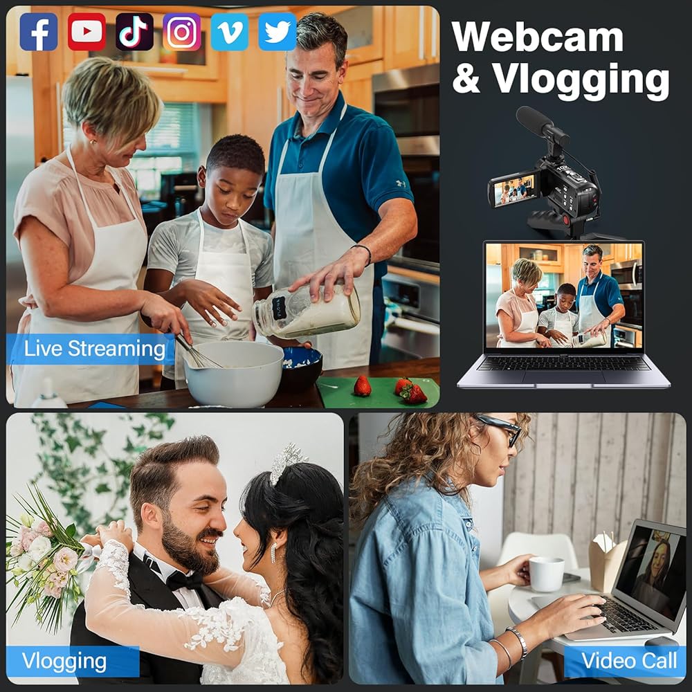 【4K Video 30MP Camcorder】4K video camera offers Ultra High Definition (UHD) 4K (2880*2160) video recording and 30MP image resolution. The high color richness of it ensures vibrant colors and stunning views even on cloudy days. This high-quality vlogging camera allows you to securely share your content on YouTube, Facebook, TikTok, and more.