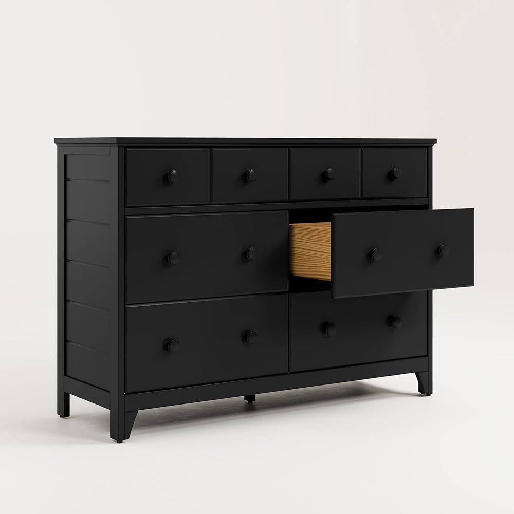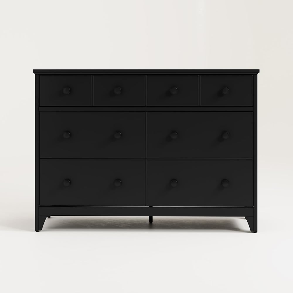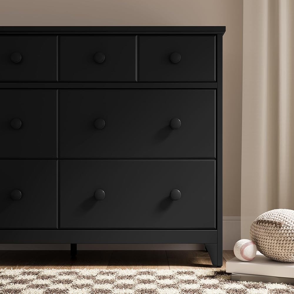 The Storkcraft Moss 6 Drawer Double Dresser is a universal bedroom storage solution, designed in the popular Modern Farmhouse style that will be sure to elevate the look of any bedroom. Complete with detailed, textured shiplap side paneling, this stylish dresser is crafted with high-quality wood and composites; outfitted with durable steel hardware, and equipped with smooth-gliding Euro-glide drawers with metal safety stops. The Storkcraft Moss 6 Drawer Double Dresser is available in multiple child-safe, non-toxic finishes to match your bedroom decor. Certified safe, the Storkcraft Moss 6 Drawer Double Dresser meets or exceeds all applicable ASTM International and CPSC safety standards, complies with all applicable federal anti-tipping standards, and is backed by Storkcraft's 1-year limited warranty and supportive customer care. Exclusively from Storkcraft, proud recipient of the 2020 Women's Choice Award for 9 out of 10 Customer Recommended Baby and Kids Furniture. Compare Storkcraft's line of chests and dressers to those from Delta Children, South Shore, Ashley Furniture, Prepac, and Sauder. Assembly Required.