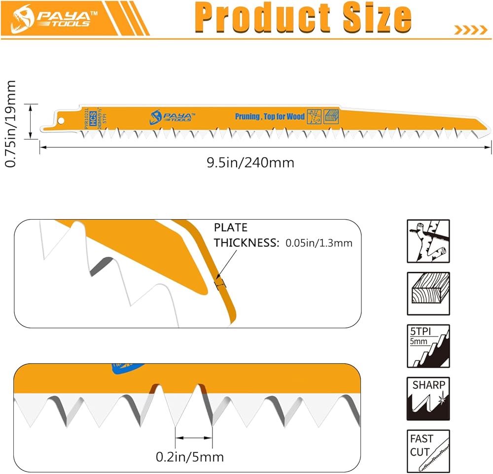 WIDE COMPATIBILITY:the PAYA TOOLS wood Reciprocating Saw blade fits all brands of reciprocating saw tools with 1/2 inch shank.