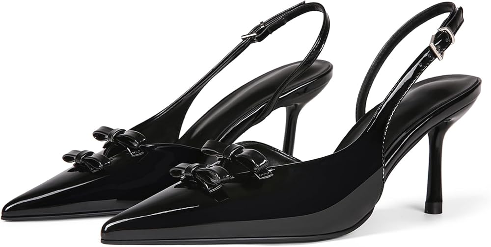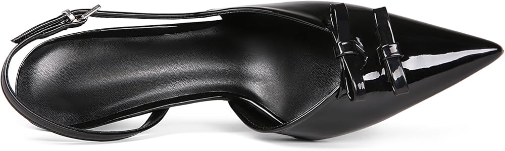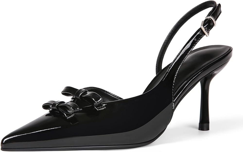 Design: Women's pointed toe pumps design with slingback straps, 3.27 inches stiletto heel and patent leather shoe upper with bow decoration, create a fashionable look for you.