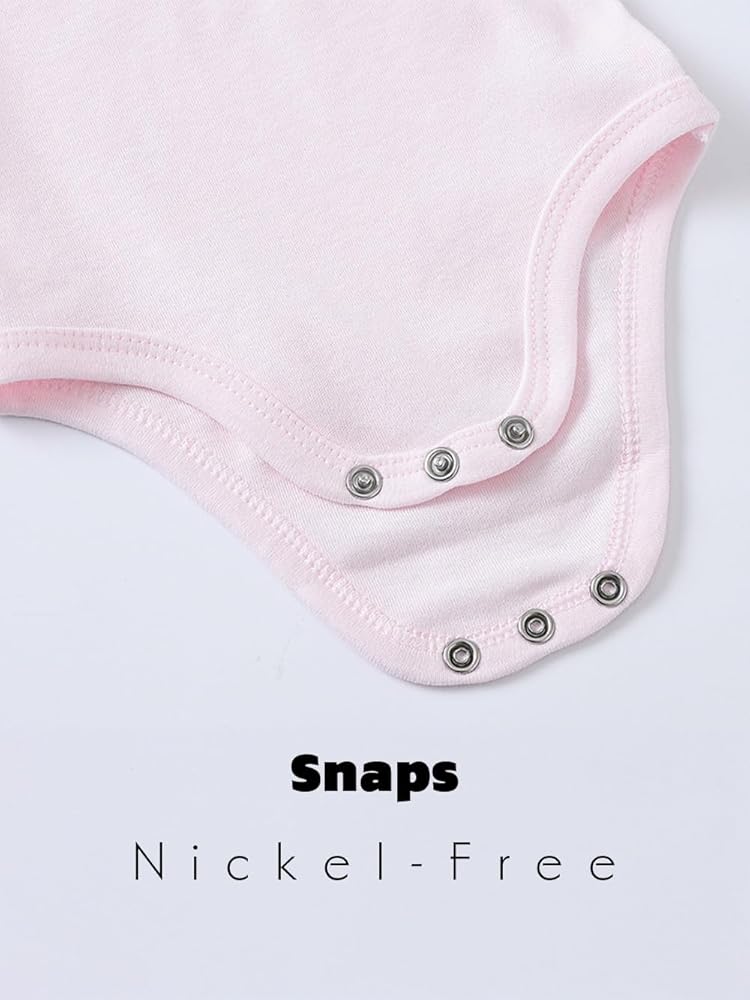 Easy to put on / take off- The design of baby bodysuits with expanded neckline and 3 Snap closure at the bottom, help you to put these baby clothes on/off easily for your baby.