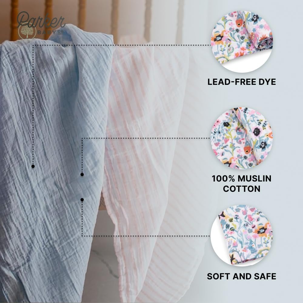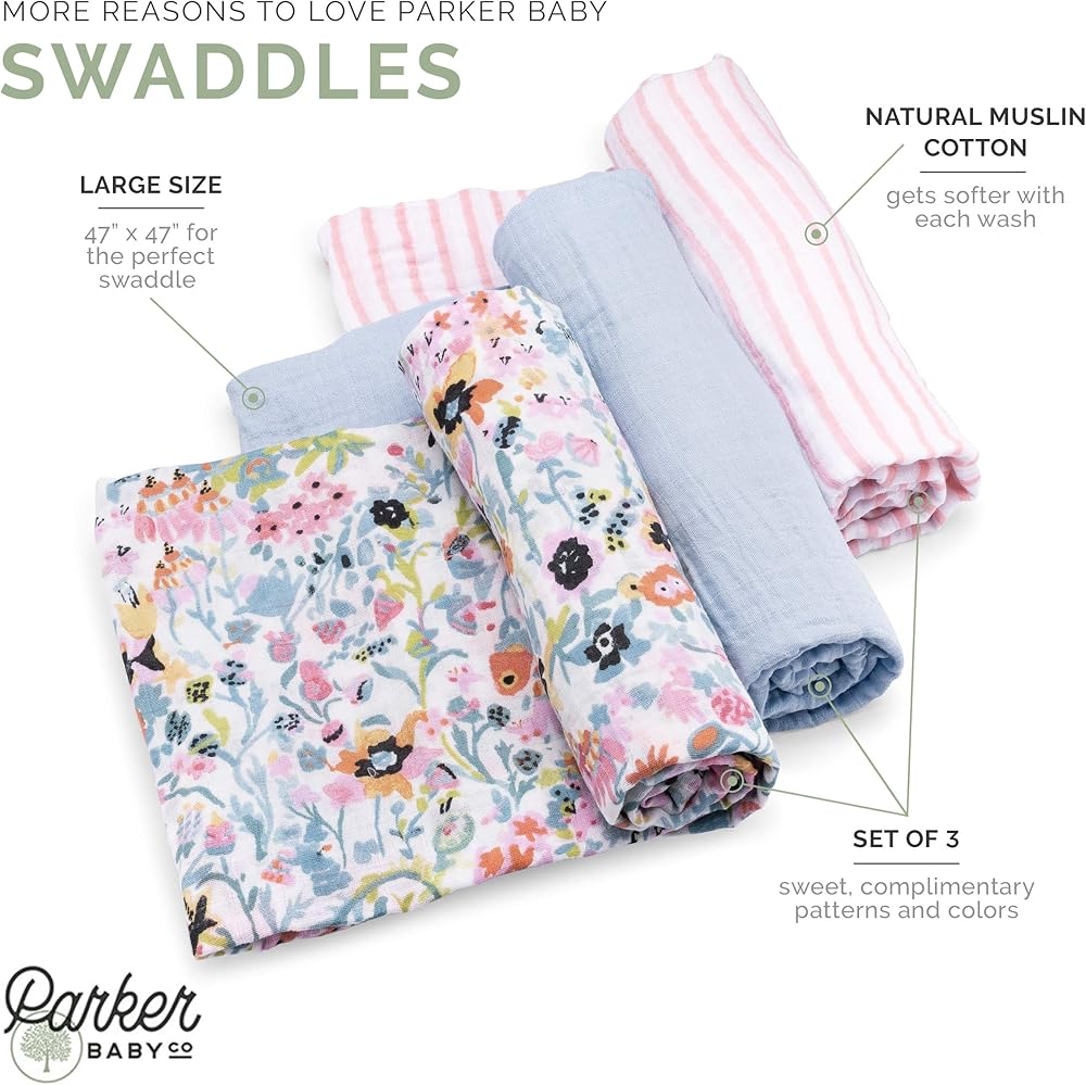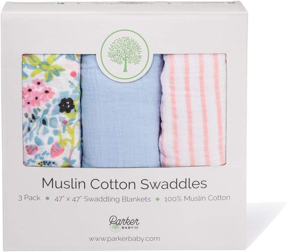 LARGE 47 X 47" SIZE - Each baby blanket swaddler is generously sized at 47 x 47" of soft, comfortable and breathable gauze muslin cotton. The Parker Baby Swaddling Blankets are large enough to easily wrap or swaddle babies from newborns and infants to toddlers.