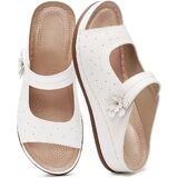 Material: Womens sandals feature premium vegan leather, delicate floral decoration and and a soft & cushioned foam footbed. These sandals women are breathable and comfortable to wear all day long. Wedge heel approximately 1.38''