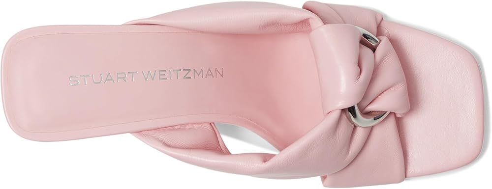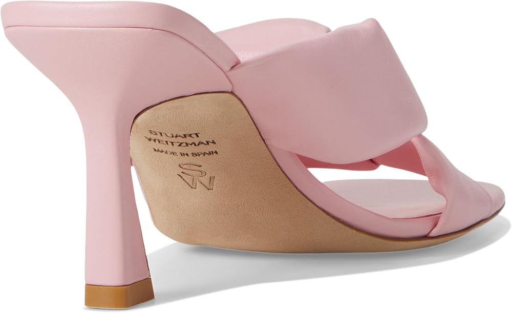 EXPERT CRAFTSMANSHIP WITH A LEATHER OUTSOLE: Made in Spain with expert craftsmanship, these slides showcase the hallmark quality of Stuart Weitzman's footwear. The durable leather outsole provides a smooth finish and superior traction, ensuring confidence with every step. This premium outsole construction enhances the shoe's longevity, making it a valuable investment in any footwear collection.