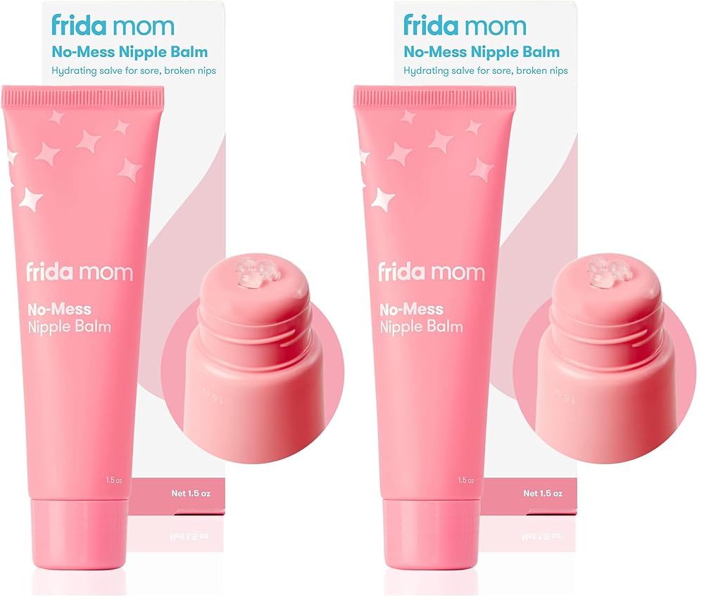 Frida Mom Nipple Cream, No-Mess Nipple Balm Moisturizer for Hydration, Gentle for Baby & Mom, 1.5fl oz (Pack of 2)
