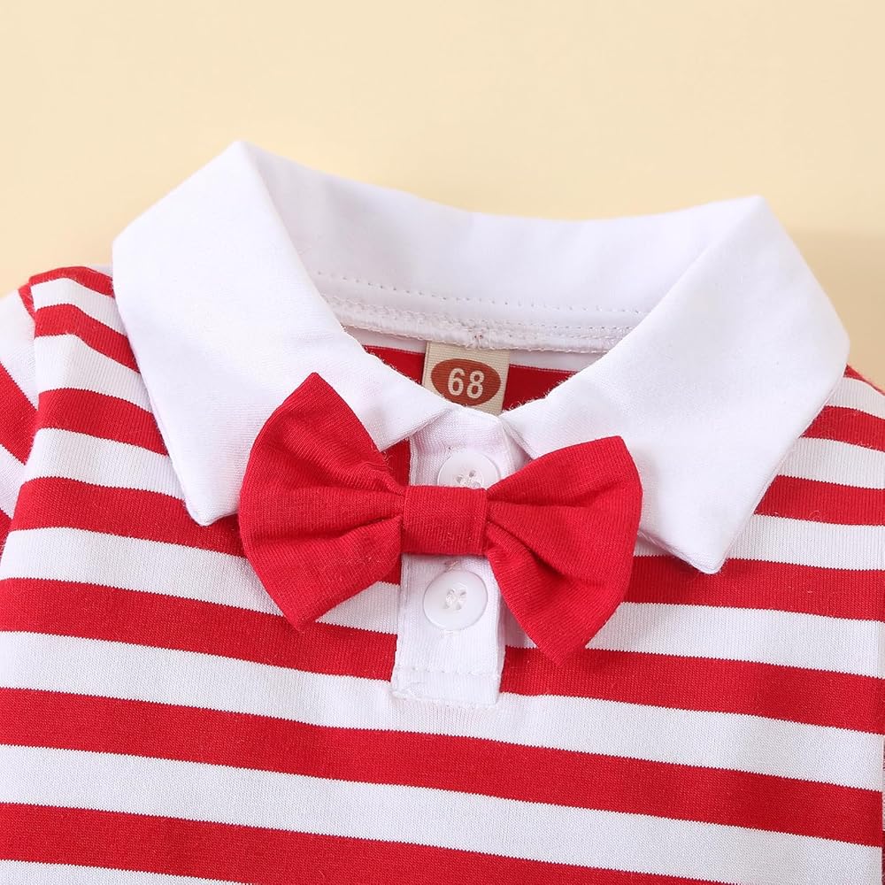 Bodysuit Tops — Featuring long sleeves,polo collar,classical stripe onesie,stretchy and soft fabric,snap closure,easy for putting on and taking off,also easy for changing diaper.