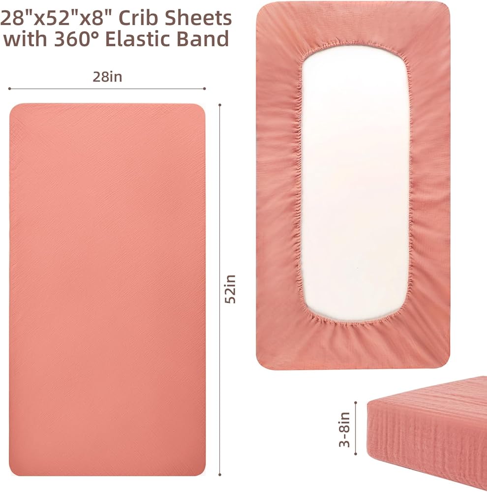 BETTER FIT: Measures 52”X 28”, our crib sheets can snug fit most standard crib and toddler bed mattresses. 8'' deep pocket provides a safe and secure 360 degree coverage and protection for your luxury mattress.