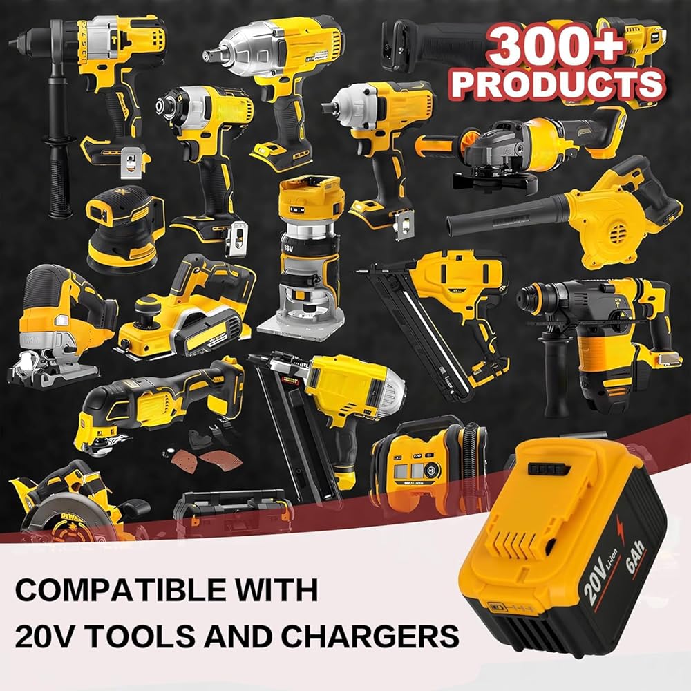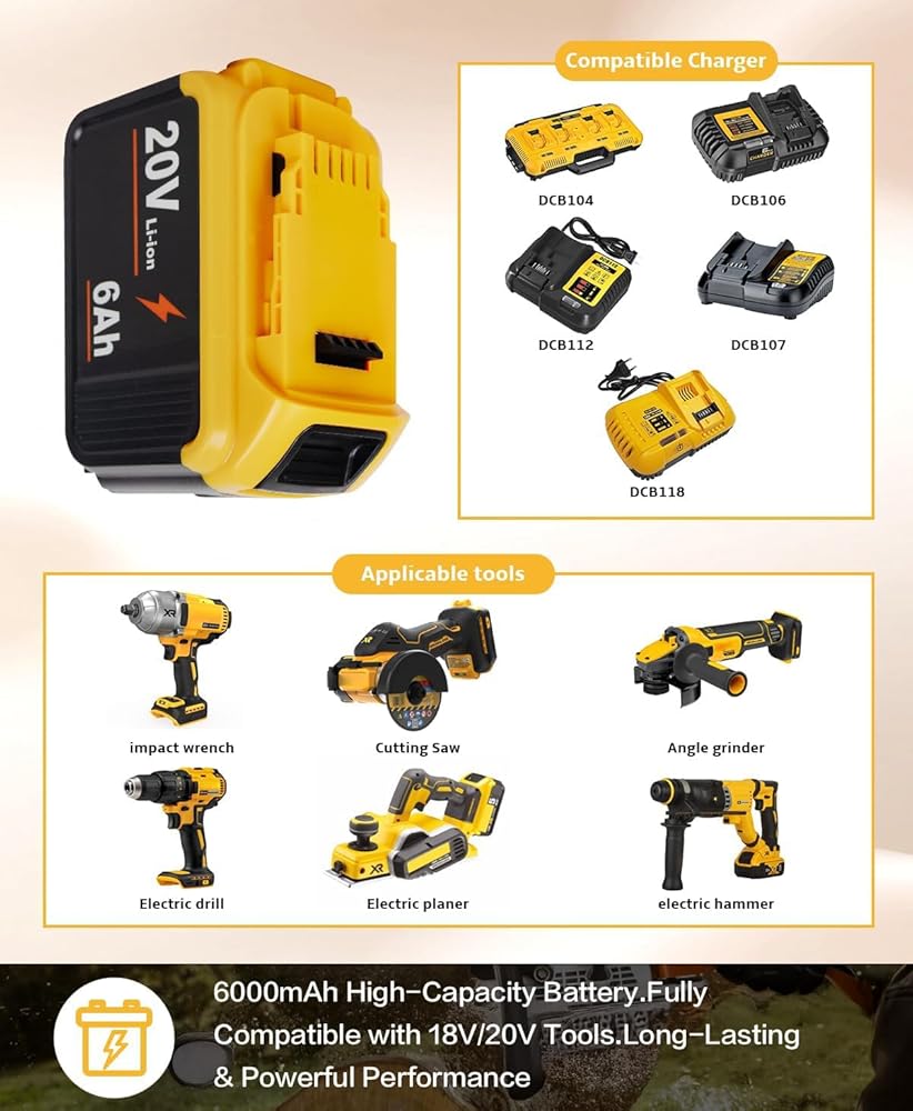 20V 6000mAh Replacement Battery for DEWALT Electric Garden Tools, Compatible with DEWALT Original Charger, Overdischarge, Temperature, and Multi-Stage Overcurrent Protection