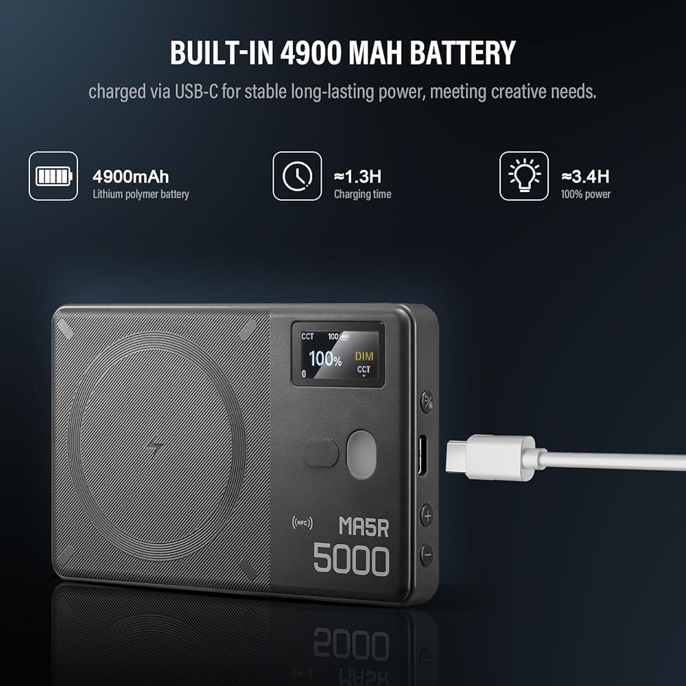 Compact and Portable Design: With a slim profile of just 13mm, the GODOX MA5R is lightweight and portable, making it easy to carry in your pocket or bag. Its compact yet powerful design makes it your go-to lighting solution, delivering excellent illumination in a sleek, pocket-sized form.