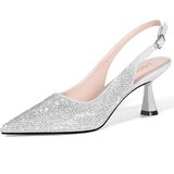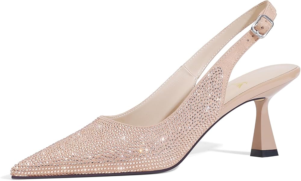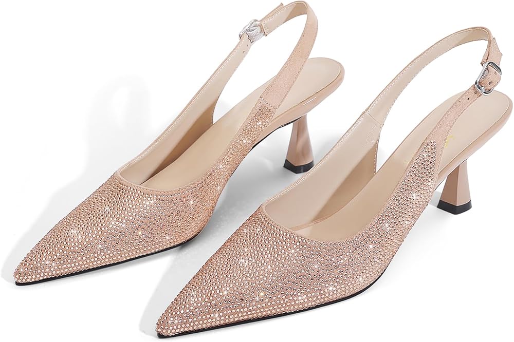 【Glitter Heels】: The sling back heels is decorated with shiny rhinestones, adding a touch of glamour to your outfit, and attracting attention for both everyday wear and formal occasions.