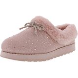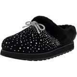 Sparkle and shine in cozy comfort wearing BOBS from Skechers Keepsakes - Fully Frosted. This vegan clog-style slipper features a soft knit upper with mini rhinestone 'stripes' embellishment, faux-fur collar and lining, and a cushioned Skechers Memory Foam footbed.