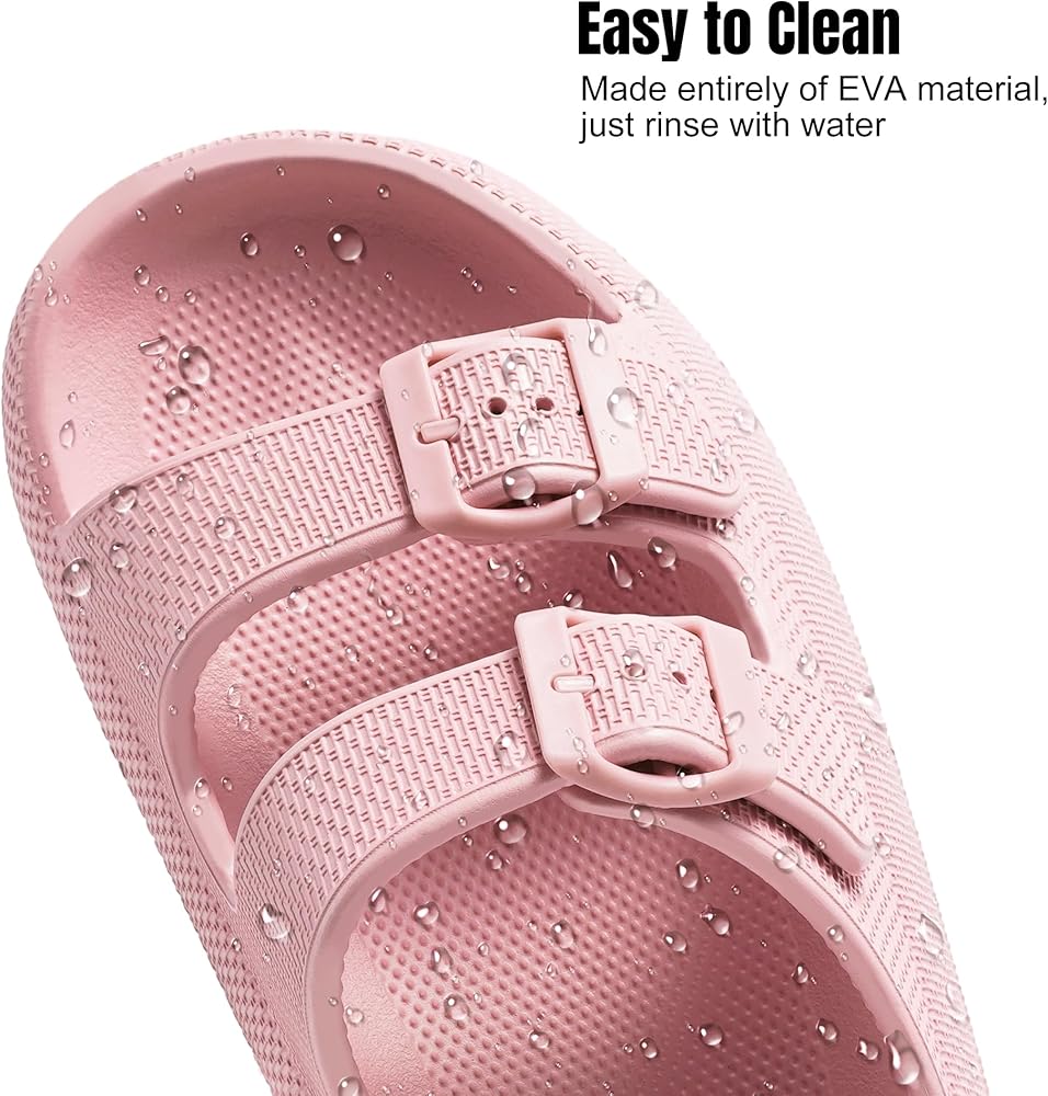 KELISI women's slipper is centered around comfort and fashion, featuring a thick EVA sole that provides cushioning and support, relieving walking pressure. Adjustable strap design, suitable for wide footed women, flexible fit for both feet. The bottom wave pattern and non slip particles enhance indoor and outdoor grip, ensuring safe walking. Whether at home or on vacation, it can keep your feet light and comfortable all day long