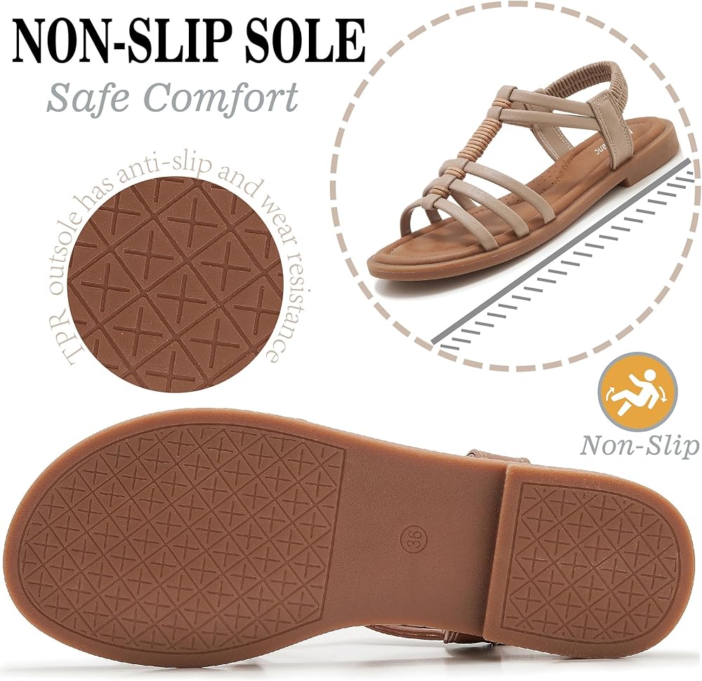 Soft Material: Made with a PU leather upper and an open-toe design, these flat sandals for women are soft and breathable to allow your feet to enjoy more breathability and coolness on hot summer days