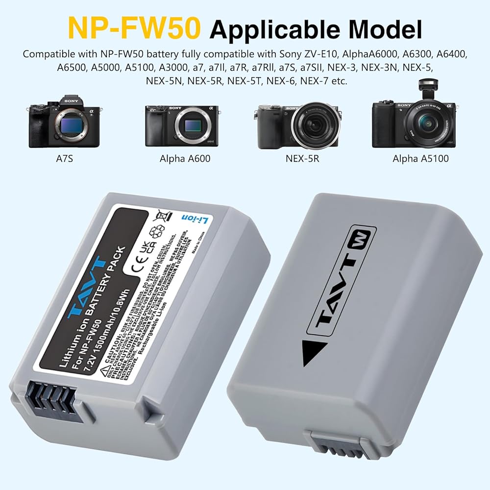 【Perfect Compatibility】 This NP-FW50 dummy battery is a replacement battery for Sony ZV-E10 A5000 A5100 A3000 A6000 A6100 A6300 A6400 A6500 VP-FW50, A7 II A7R II A7S II Cameras (Without Plug)