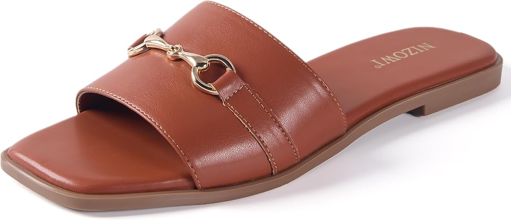 Stylish Sandals: NIZOWI fashionable white flat sandals for women dressy feature a metal buckle design that add a fashion, elegant and luxury touch. These timeless summer women's flat sandals elevate many outfit