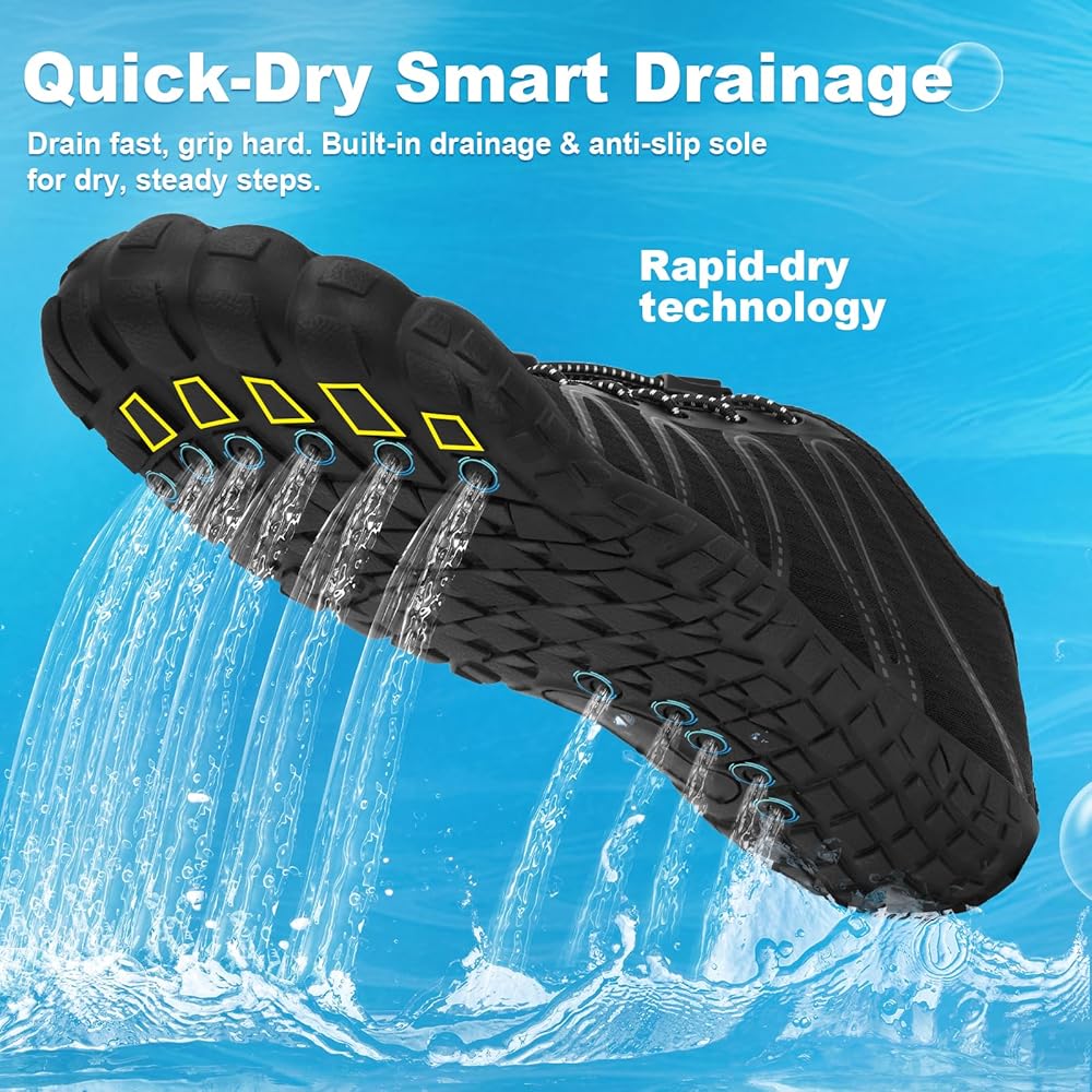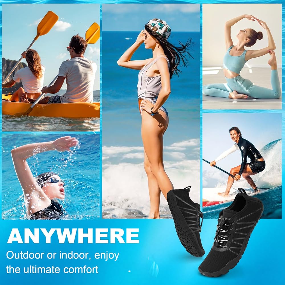 【Quick Dry with Drainage Holes】Perfect for water activities, our water shoes for women and men feature drainage holes for rapid drying. These swim shoes maintain breathability, preventing moisture buildup and ensuring a dry, comfortable experience, whether hiking through streams or enjoying a day at the beach.