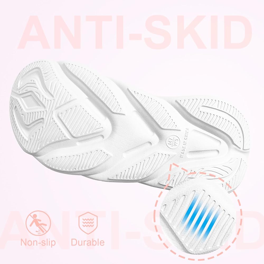 NON-SLIP & WEATHER-RESISTANT SOLE: Deep-tread grooves and directional traction lines grip wet floors, poolside, or gym surfaces. Quick-drying material for indoor/outdoor use.