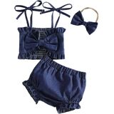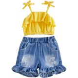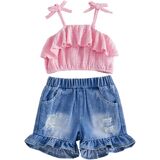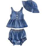 - Material: western baby girl clothes, baby girl jeans shorts set, sleeveless camisole denim set, bow print spaghetti strap tops and denim shorts summer outfit, cotton and polyester, skin-friendly fabric, comfortable, stretchy, can be hand washed and machine washed