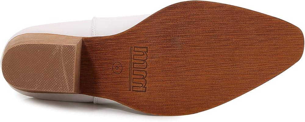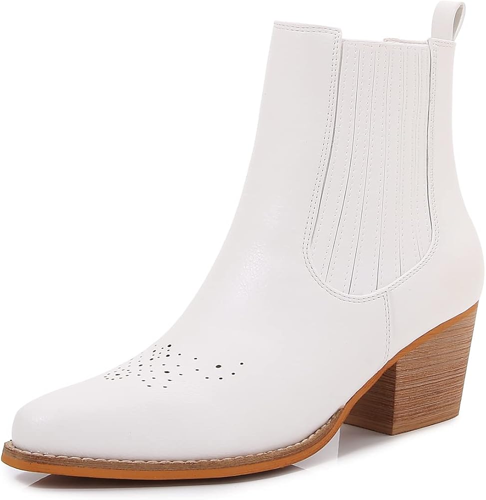 mm Women's Pointed Toe Mid Heels Chelsea Ankle Boots, Slip On Elastic Chunky Block Wooden Heel Short Western Cowboy Short Booties for Ladies, Brown Black White