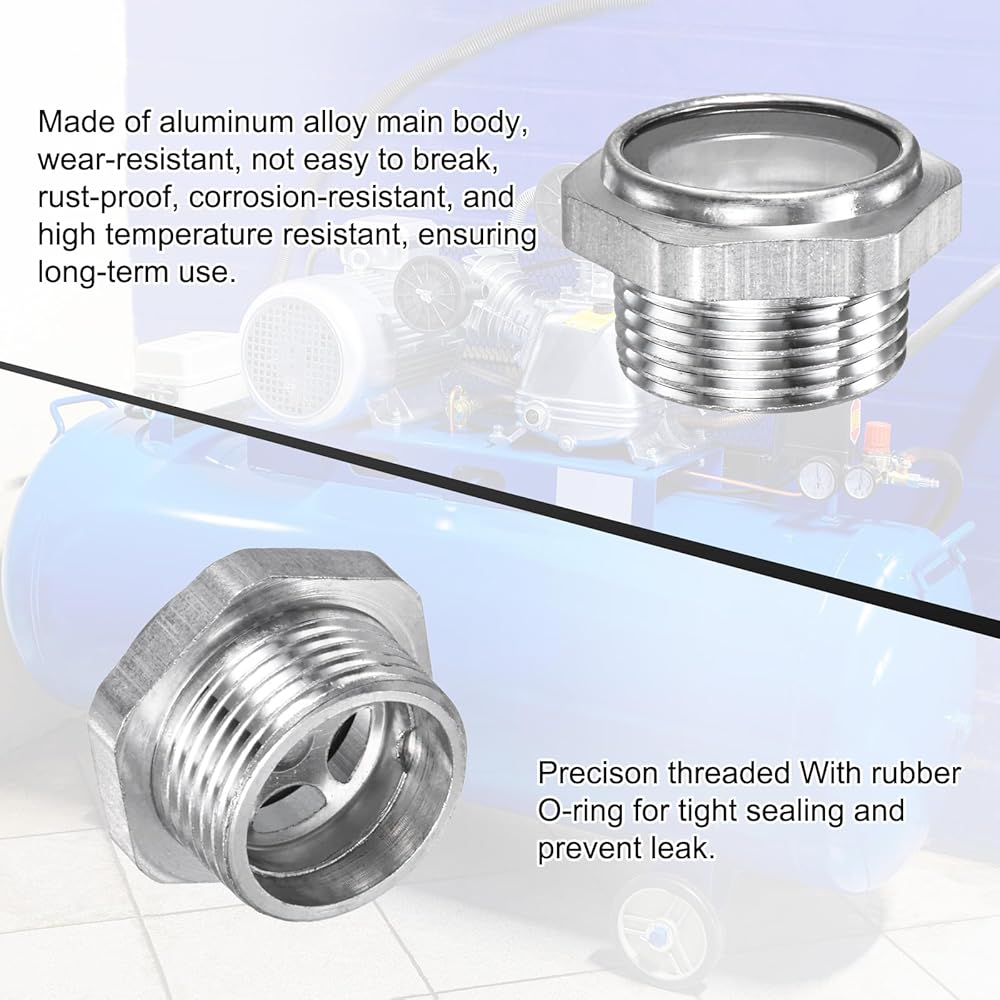 • [Size & Package] - 1pcs 1/2" NPT Male Thread Compressor Sight Glass, easy to install and fit with various air compressors. With rubber O-ring for tight sealing and leak-free operation.