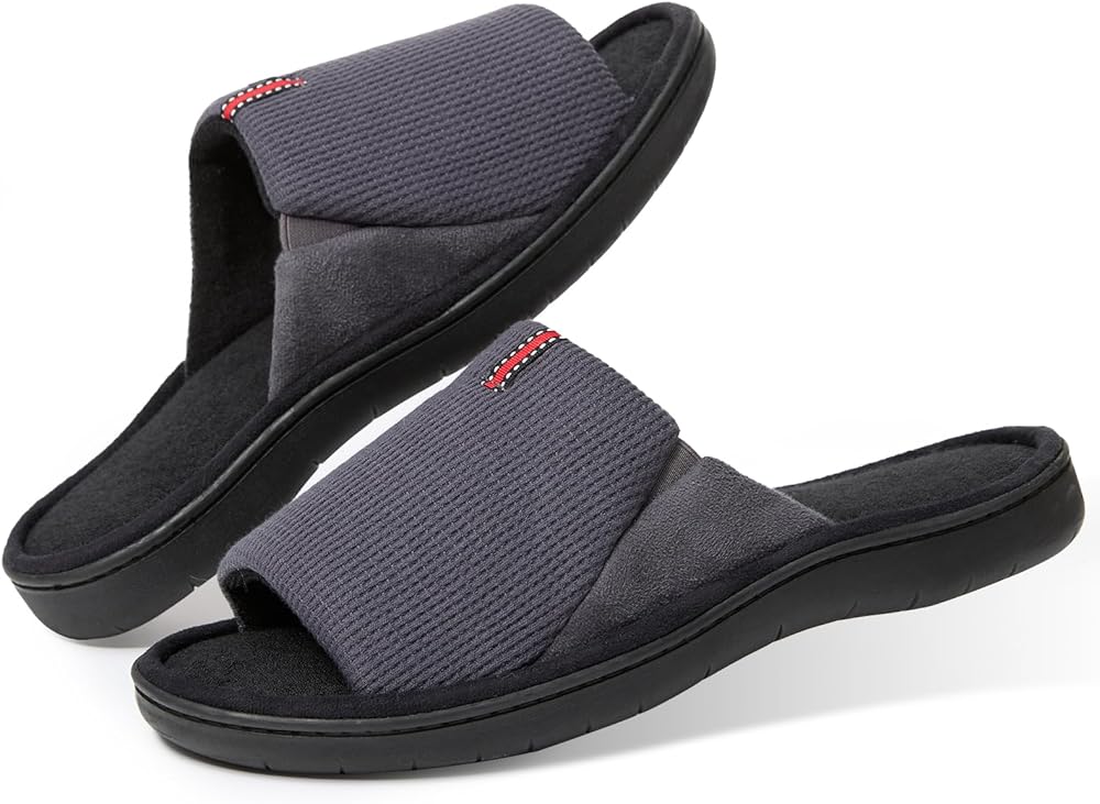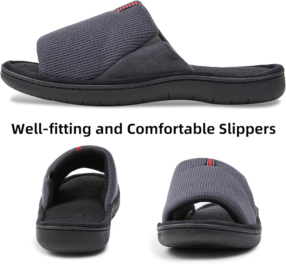 Washable Men's Open Toe House Slippers Lightweight Elastic Top Comfy Slip on Indoor Slippers for Men Breathable Non-Slip Soft Bedroom for All Season Black GreyBlack NavyBlue US8-14