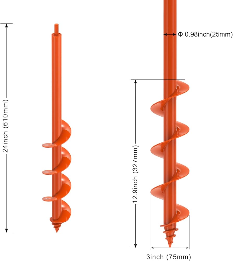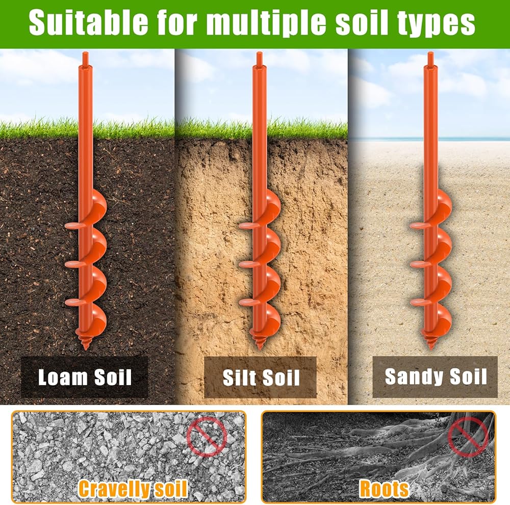𝑺𝒂𝒇𝒆&𝑭𝒂𝒔𝒕𝒆𝒓 𝒕𝒐 𝑼𝒔𝒆: Each auger drill bit has no sharp edges, the 3mm thick helix makes it super easy and quick, which cut through clay, tough mud, sand, dirt and deals with rocks pretty well.
