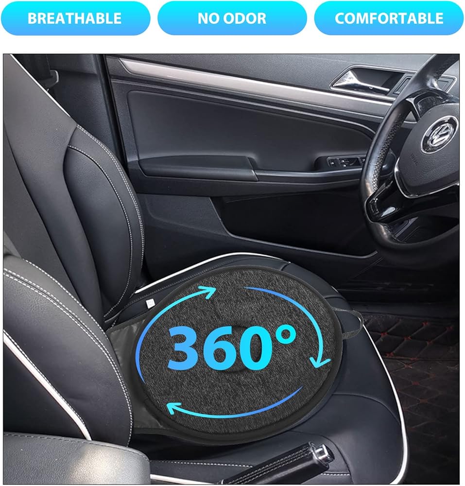 [360° Rotating Seat Cushion] Providing smooth, easy movement in either direction, the swivel cushion rotates a full 360 degrees. exit or enter any seat without straining your back or hips by twisting and pivoting.
