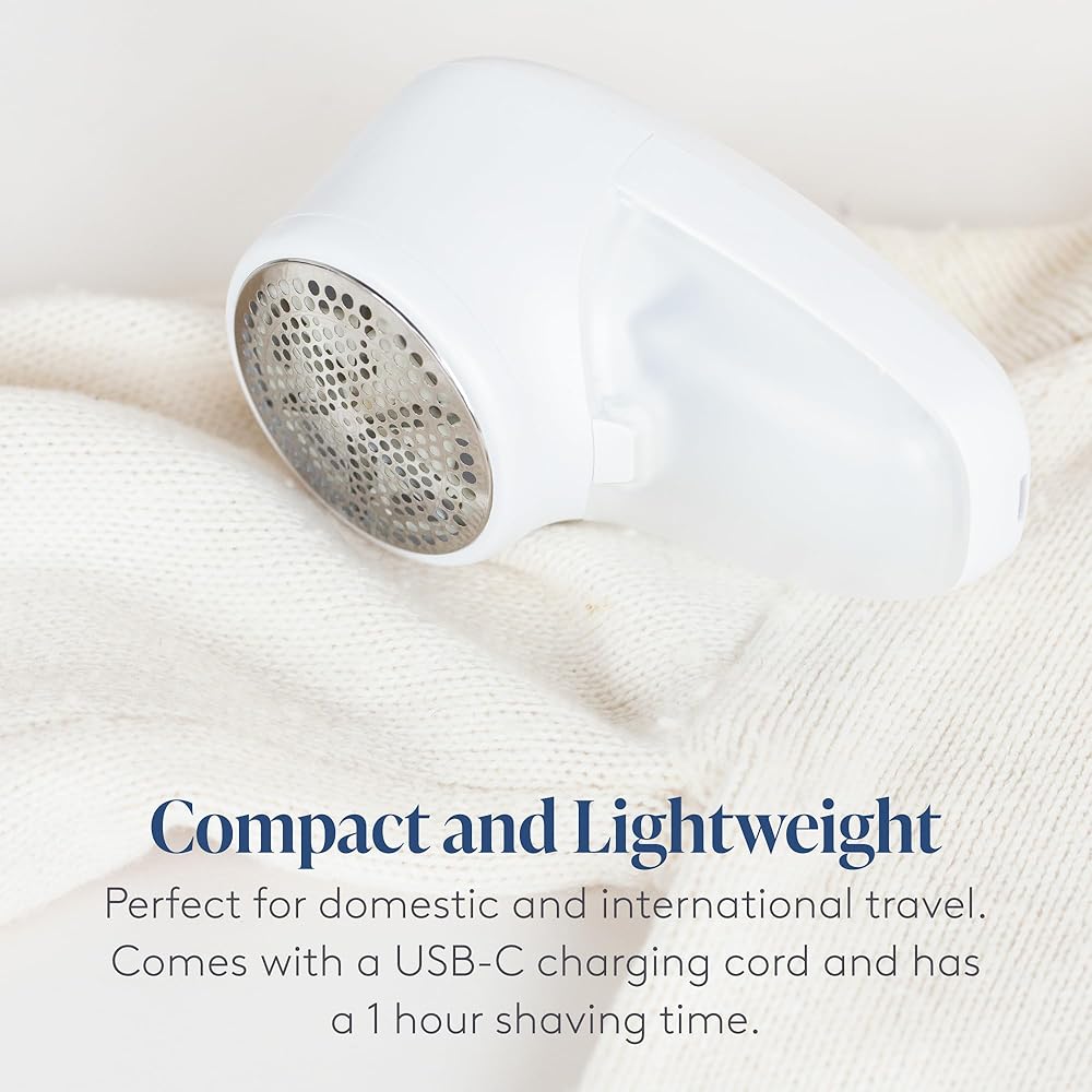Rechargeable and Wireless Fabric Shaver: This fabric shaver for clothing and lint remover comes with a convenient USB-C charging cord. With a full charge providing an hour of efficient shaving time, your sweater shaver is always ready to spruce up your outfits, ensuring that you look meticulously groomed without being tethered to a power outlet. Embrace the freedom of wireless fabric care.