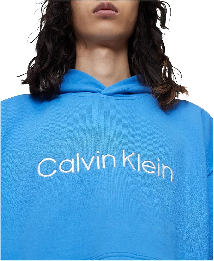 With iconic logo styling at the front, this Calvin Klein sweatshirt features a plush cotton knit for premium comfort. Cut in a relaxed fit with a crossover hood, a kangaroo pocket and ribbed knit trim. A fashion essential, this Calvin Klein pullover is a versatile, on-trend layering piece for any collection.