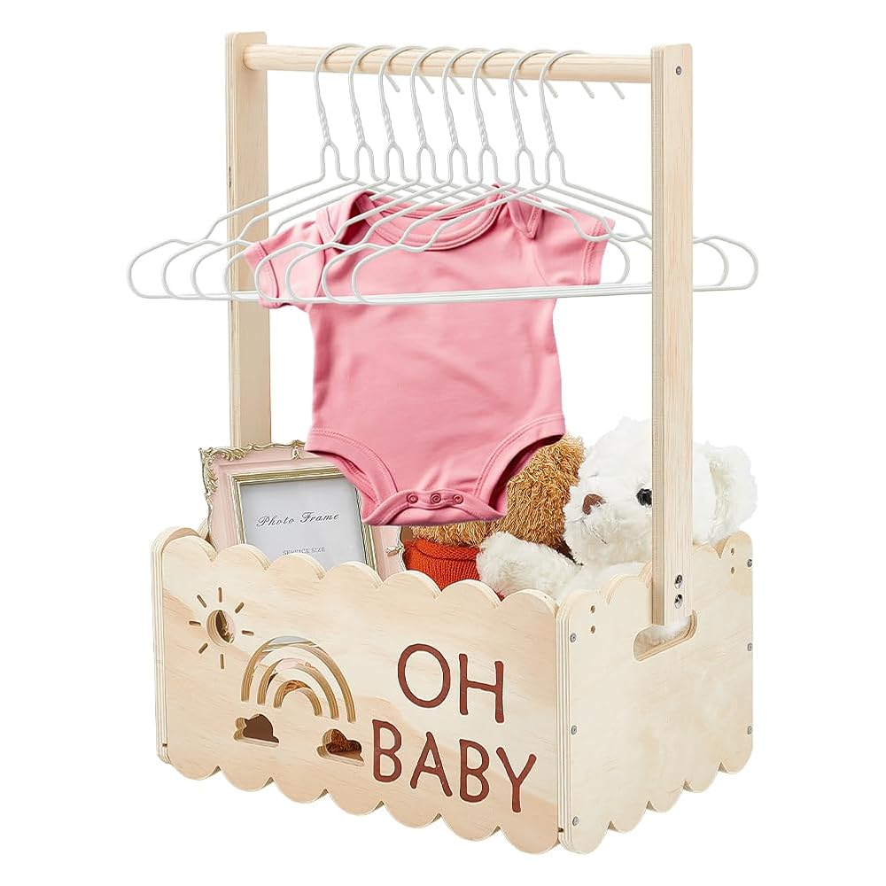 Baby Storage Set: Set includes 1pcs wooden crate and 8pcs plastic hangers. Featuring wooden handles to provide a personalised touch, these accessories add a personal touch.