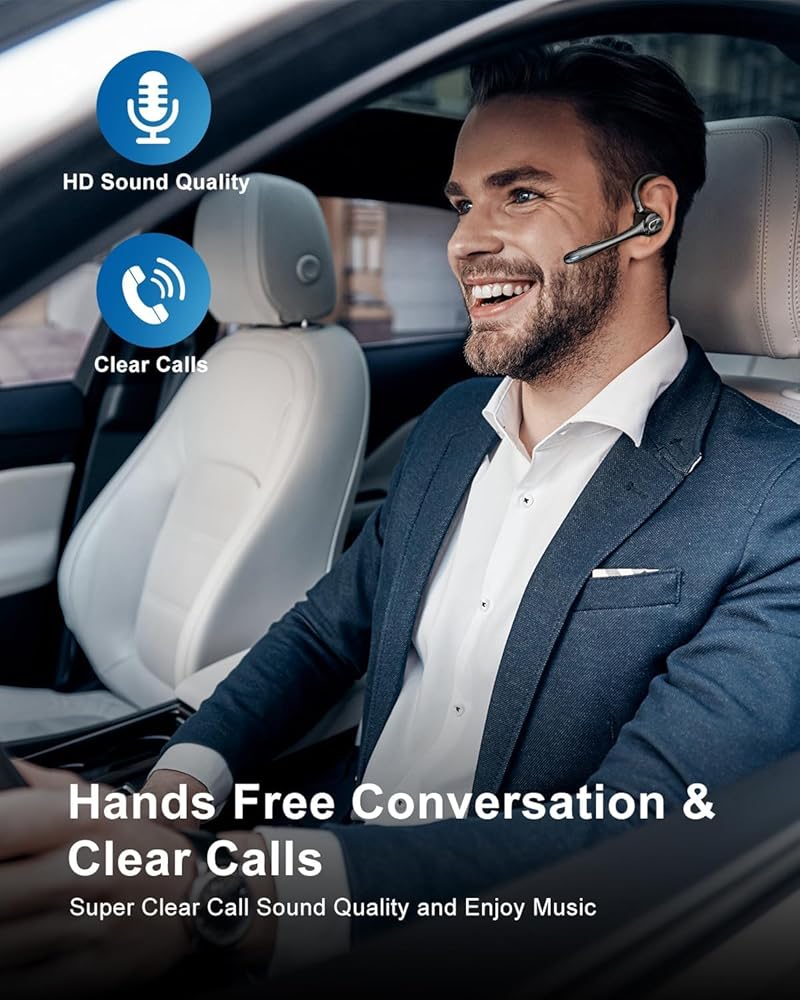 Comfortable Fit Design and HD Sound:The in ear part can rotate 45 degree,the ear hook part can rotate 360 degree,the mic handle part can rotate 180 degree. wireless headset built in noise canceling mic for HD sound and clear calls,for work