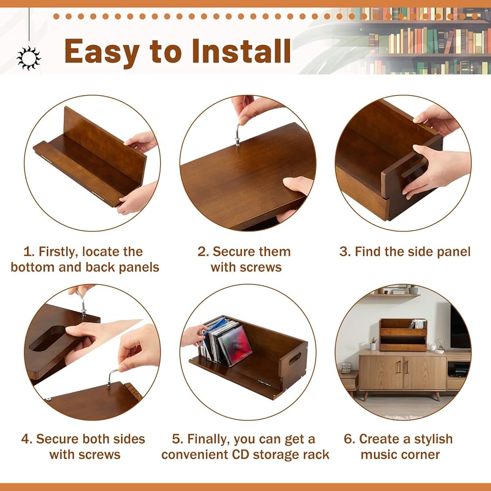 Quality Material: we provide 4 wooden CD storage boxes, the CD storage rack is made of natural wooden material that adds an aesthetic appeal to space it occupies; The beautiful brown wooden can blend in with your decor, offering a classier alternative to storing your cherished CD collections