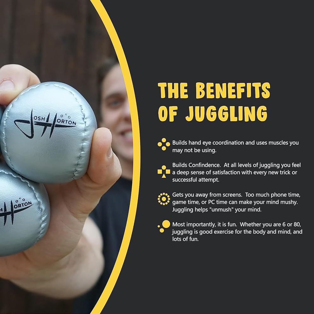 AN EXCELLENT GIFT IDEA: Tired of phones, video games, and other screens? Why not improve your eye-hand coordination, self-confidence and just have a good time? Juggling is a fun skill that lasts a lifetime.