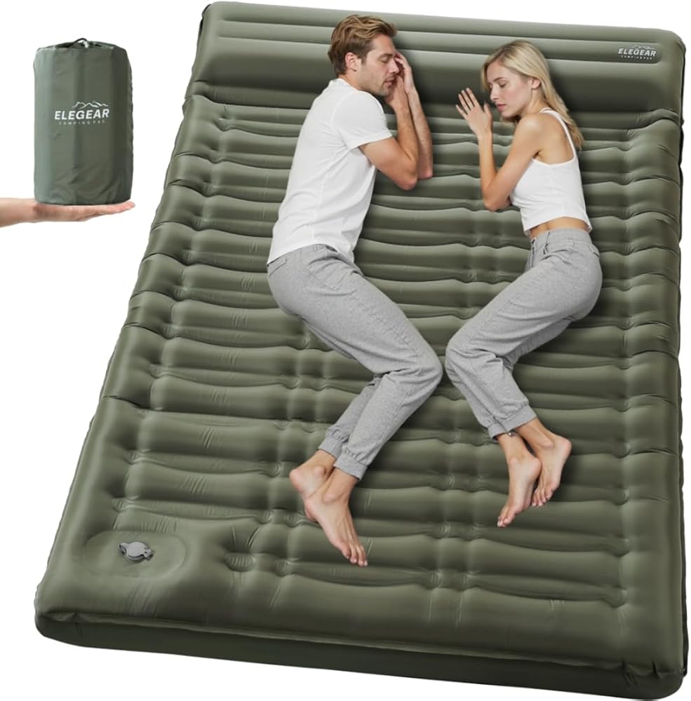 Elegear CumbreX™ Double Sleeping Pad for Camping, 5.5" Ultra-Thick Inflatable Camping Sleeping Pad 2 Person with Built-in Foot Pump, Portable Camping Sleeping Mat for Backpacking Hiking Tent, Full
