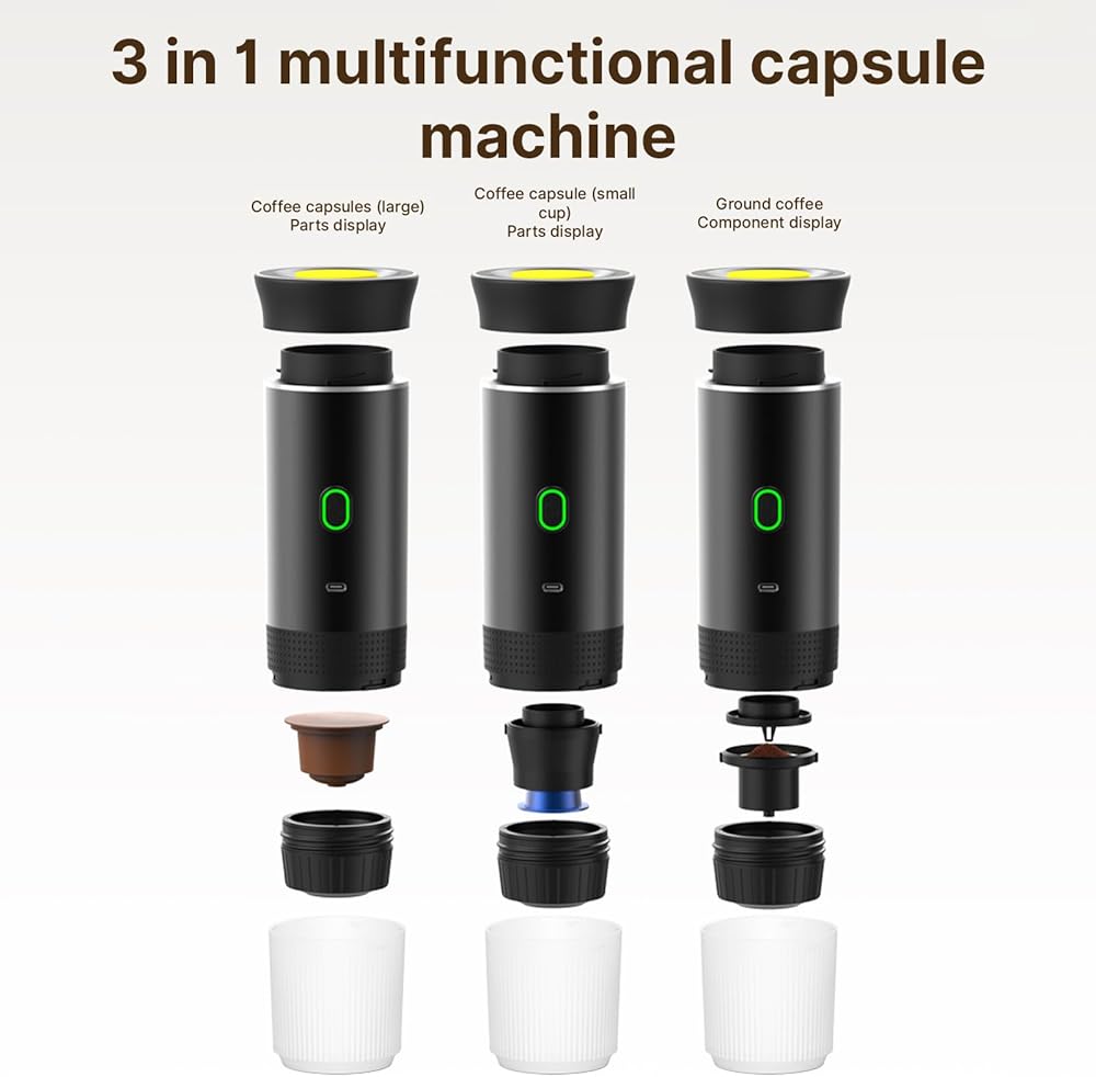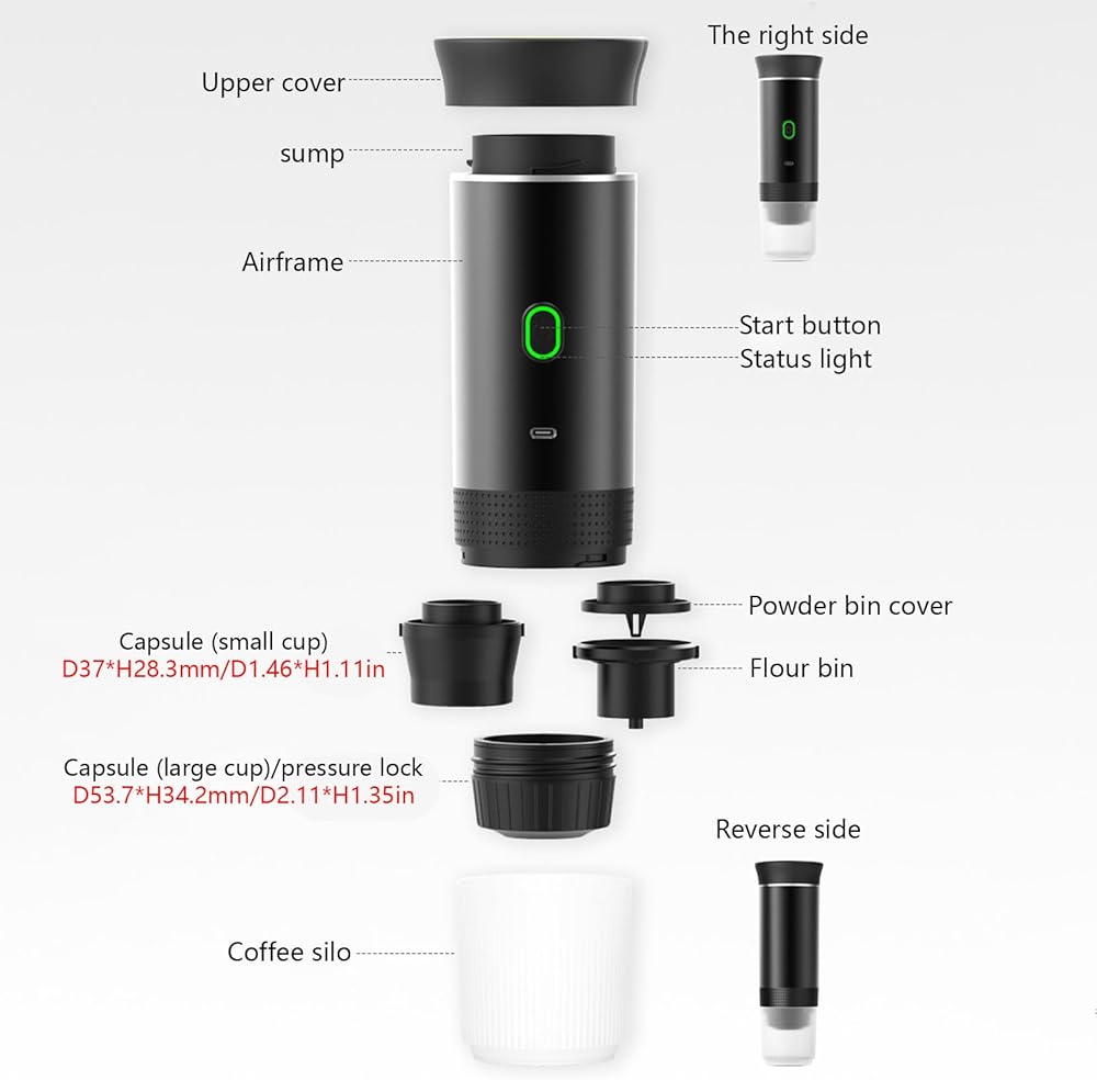 【Portable Coffee Maker】This portable coffee maker with convenient USB charging cable, work with capsule and ground coffee. Making coffee is more easier at home, car, office, travel, ect.