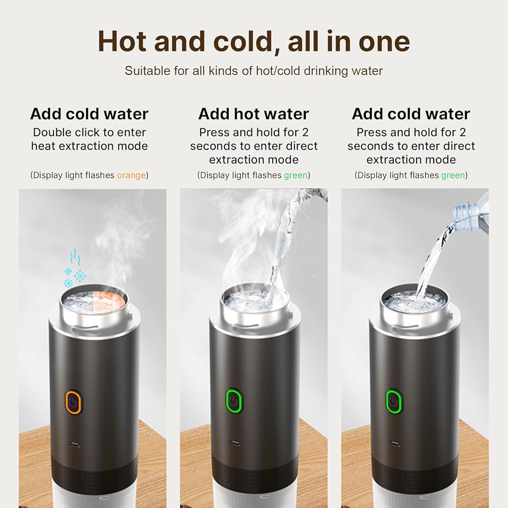 【Long Standby】Built-in rechargeable 3*2500mAh battery, cordless and less limit. 50 times for cold water or hot water direct extraction, and 4 times heating extraction after fully charged.