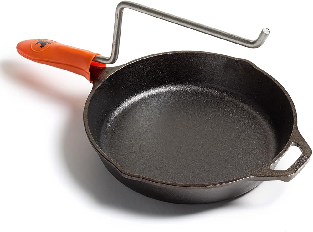 Compatible with Lodge 10.25” Cast Iron Skillet - the only cast iron to guarantee a perfect fit (sold separately) and with our custom PoulTree Foot Rest (sold separately). Pair with one for a complete roasting setup. You can also use the included reamer tool to modify the handle of a compatible cast iron skillet with flat handle.