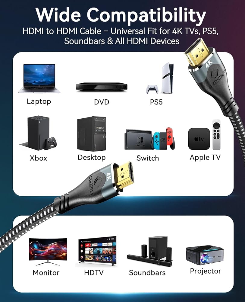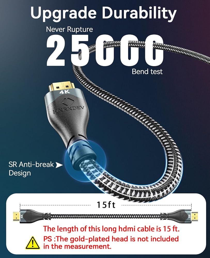 4K HDMI Cable 15Ft, Ultra High Speed HDMI Cable 2.0 Cord Braided (18Gbps), 4K@60Hz, Gold Plated Connector 3D ARC Ethernet HDMI Cord for HD TV Monitor Laptop Xbox PS4/PS5 ect(4.57m)