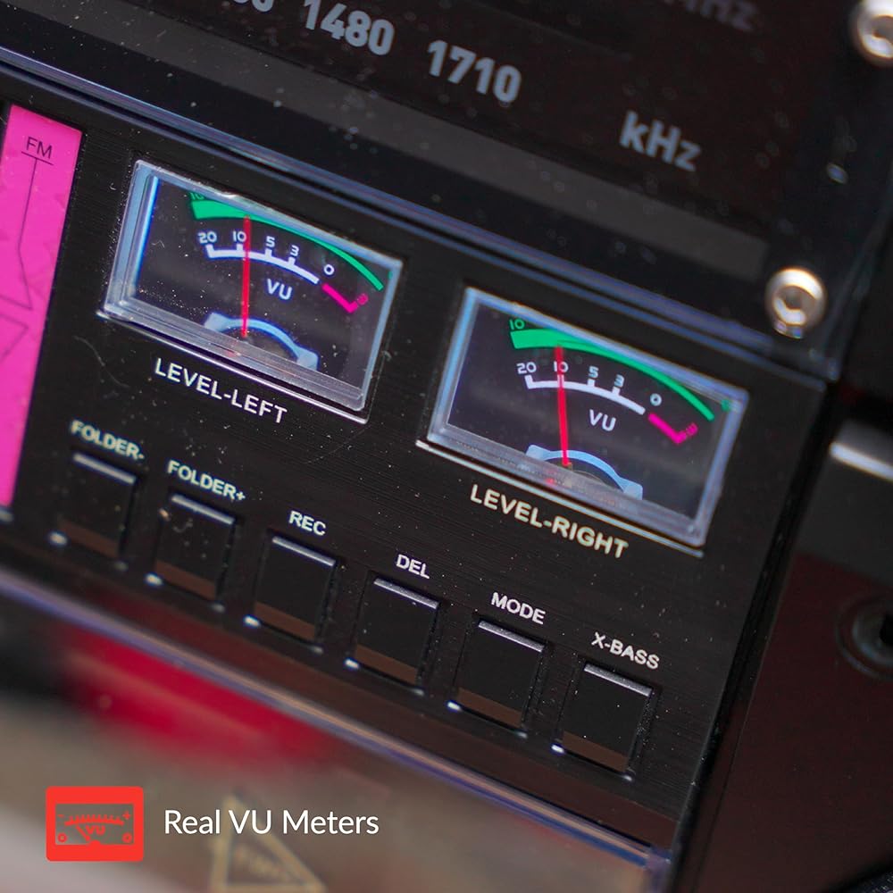 User-Friendly and Stylish: Boom box CD player AM/FM radio equipped with an easy-to-read LCD display, VU meters for precise audio monitoring, and a 3.5 mm earphone input; a blend of modern functionality with vintage appeal
