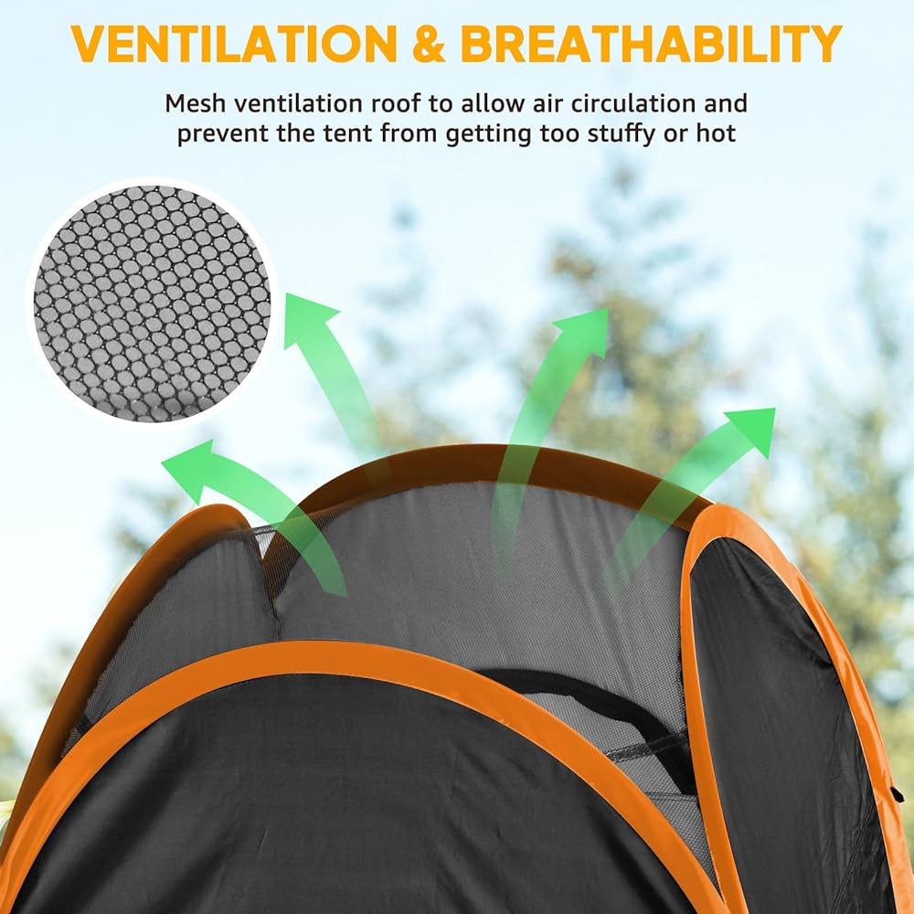 Optimal Ventilation for Comfort.Provide a separate canopy and keep a mesh roof.Provides outstanding ventilation, ensuring good airflow and preventing the buildup of humidity or heat inside the tent. When using the tent in warm weather or after physical activities, it helps regulate the temperature inside, keeping the environment fresh and comfortable. The mesh roof also allows for some visibility from inside, providing a sense of openness while still maintaining privacy.