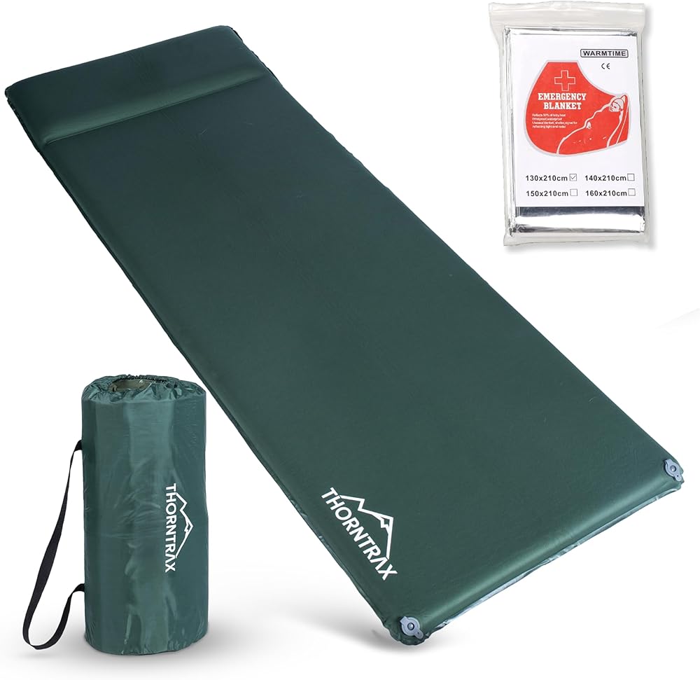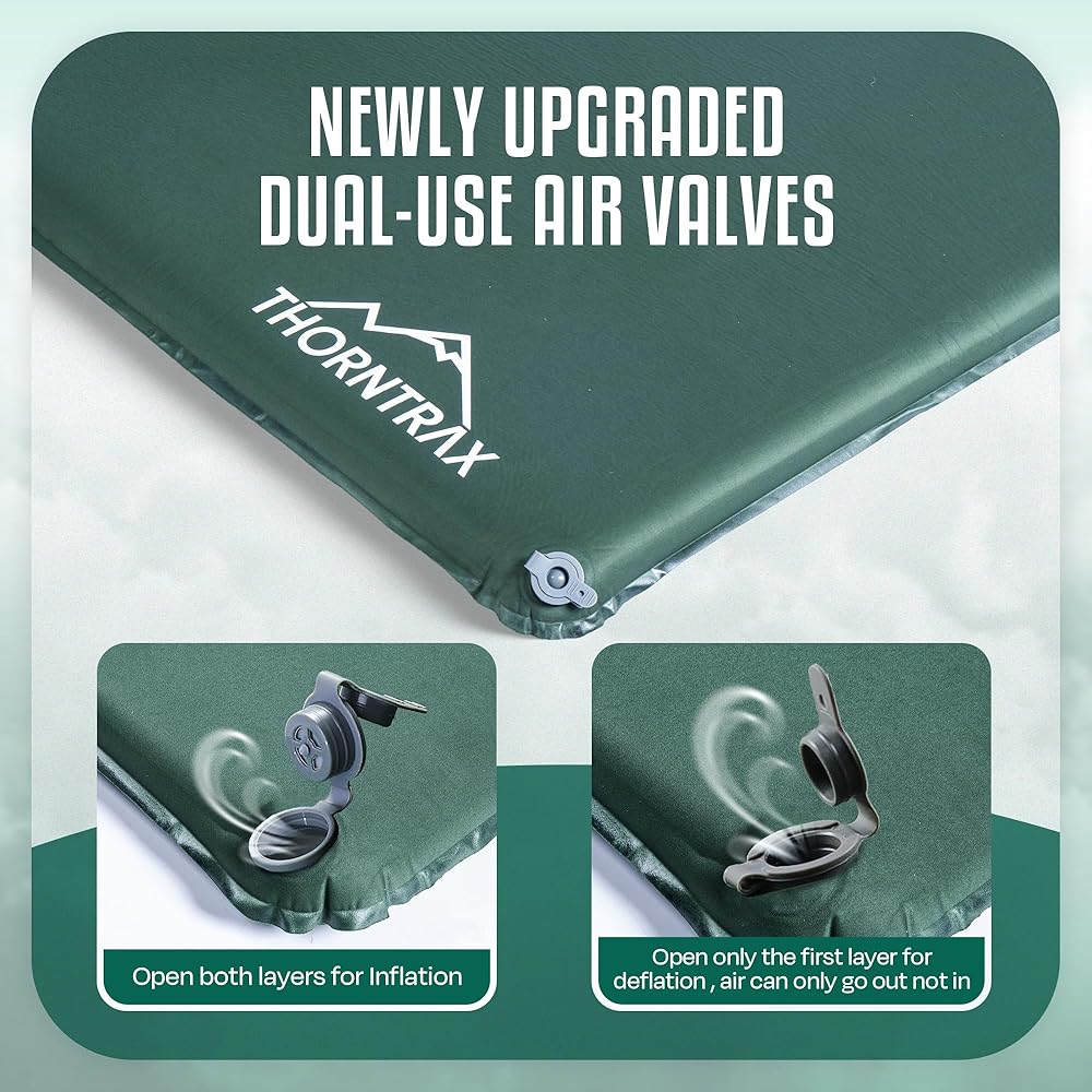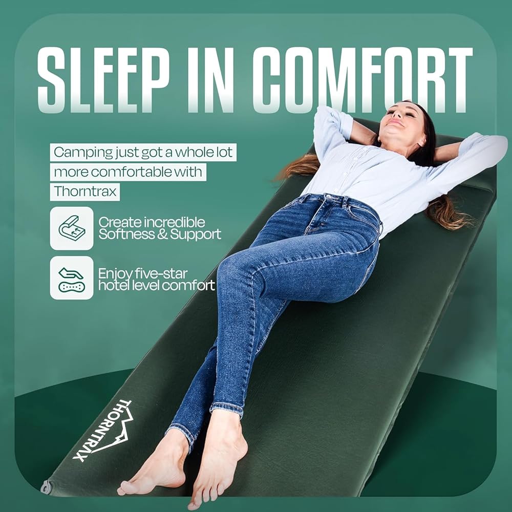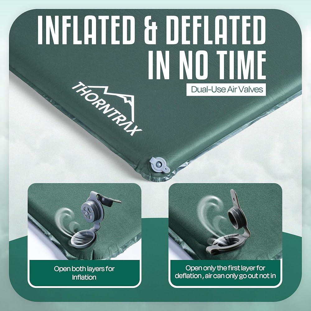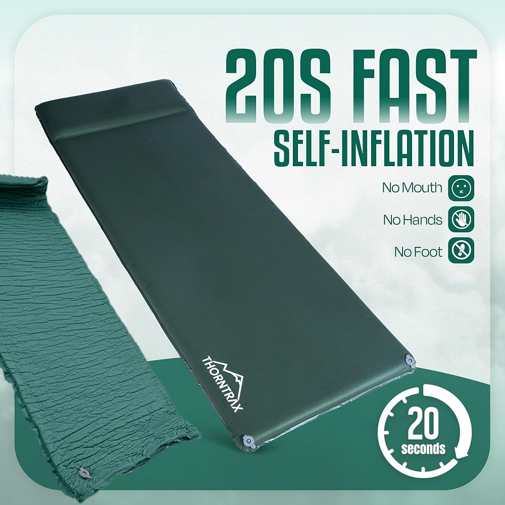 Throntrax Camping Sleeping Pad - Ultralight Camping Mat with Pillow Built-in - 3.1" Thick | Self-Inflating & Suitable for All Seasons - Compact Sleeping Pad for Camping - Green