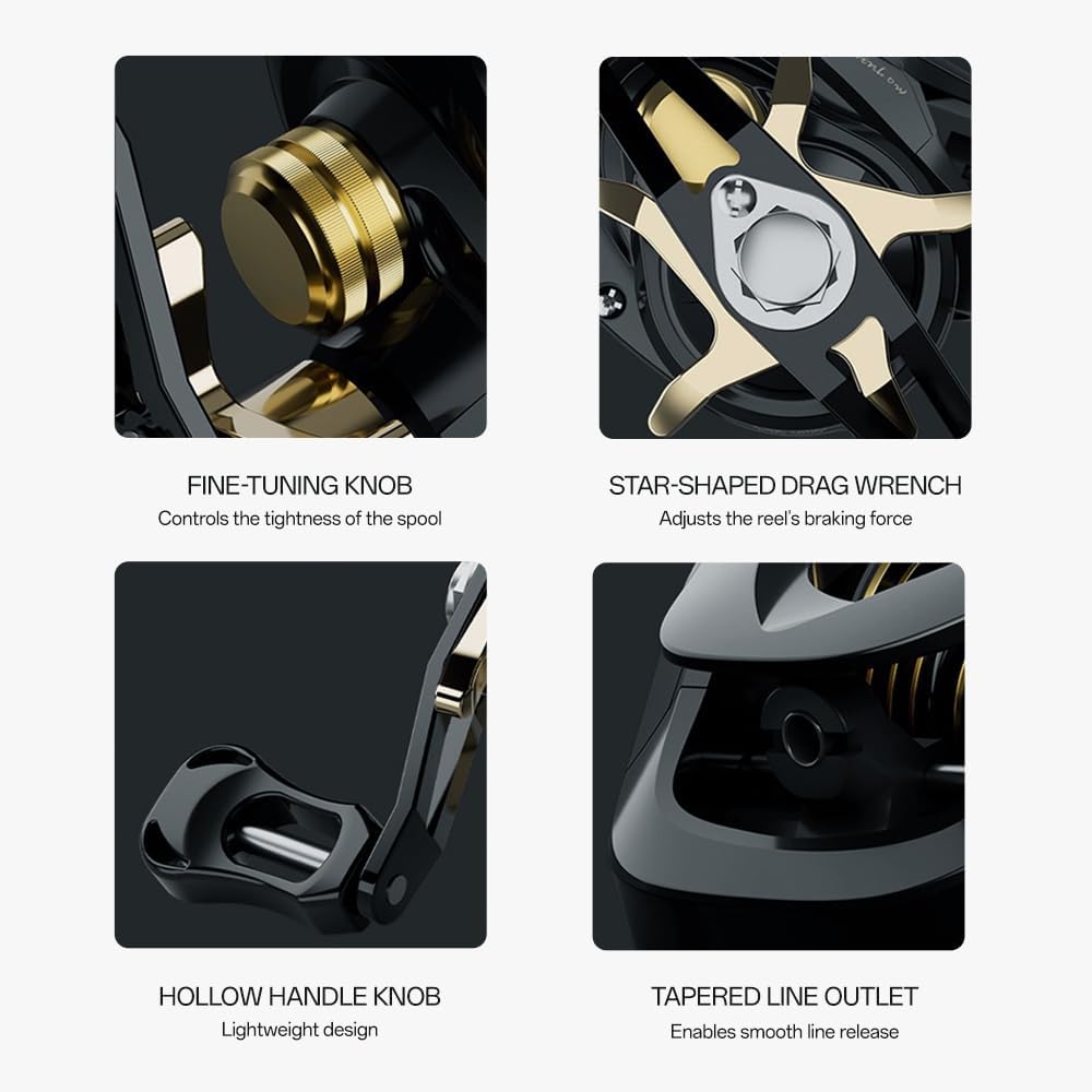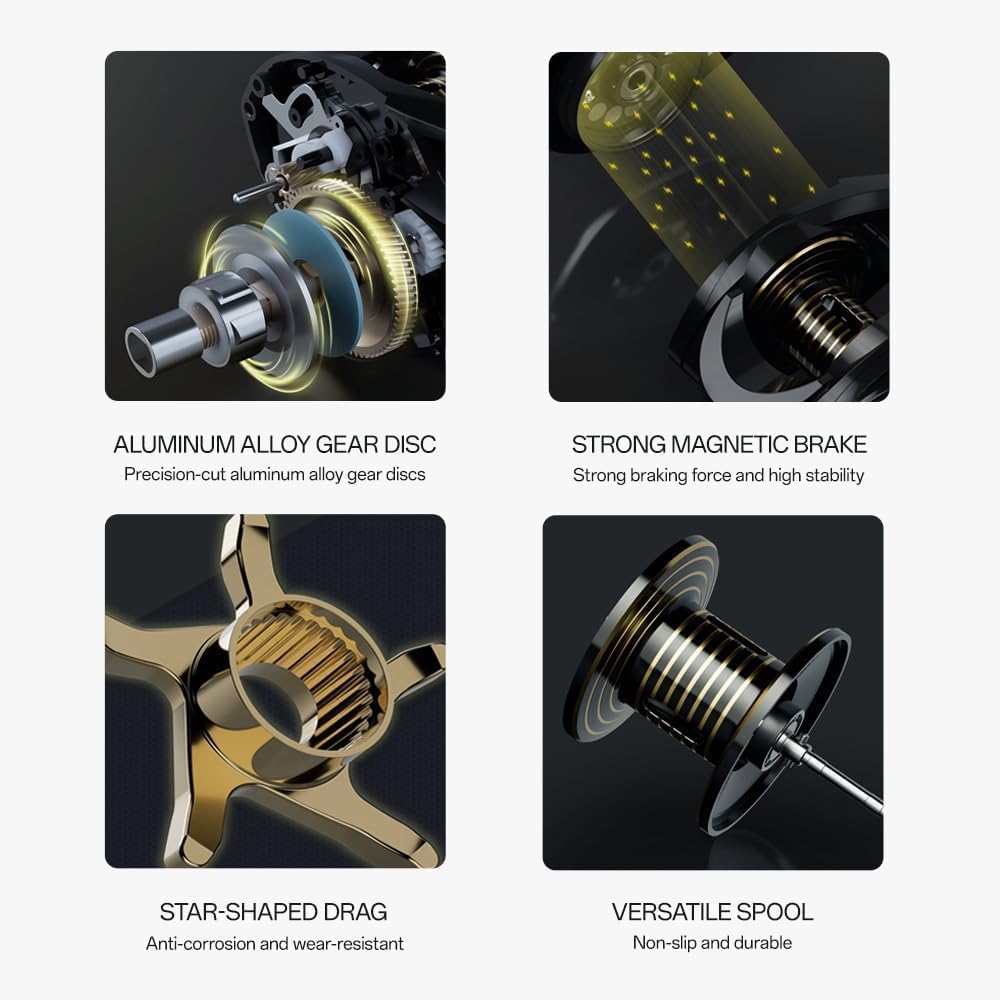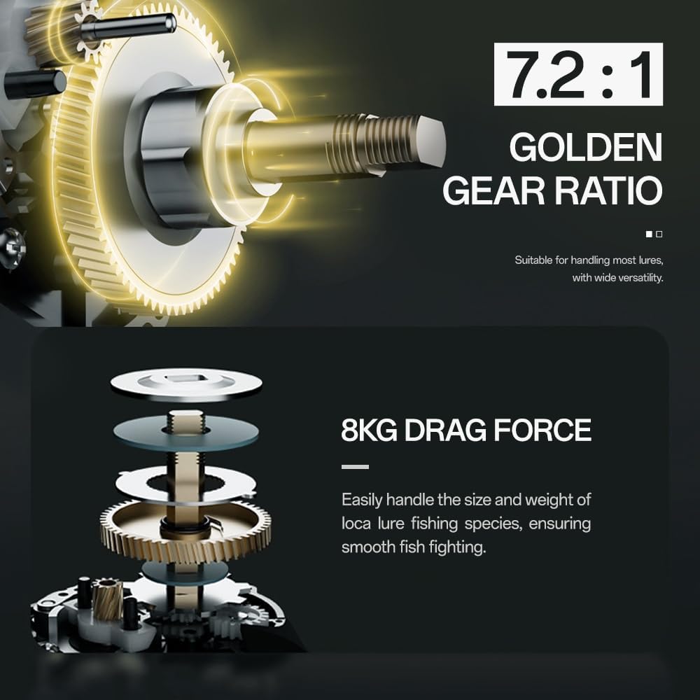 The baitcasting reel has a rotation ratio of 7.1:1 and is specially designed for multi-functional anglers. It is an excellent bait casting weapon that can save you money and bring you fishing pleasure